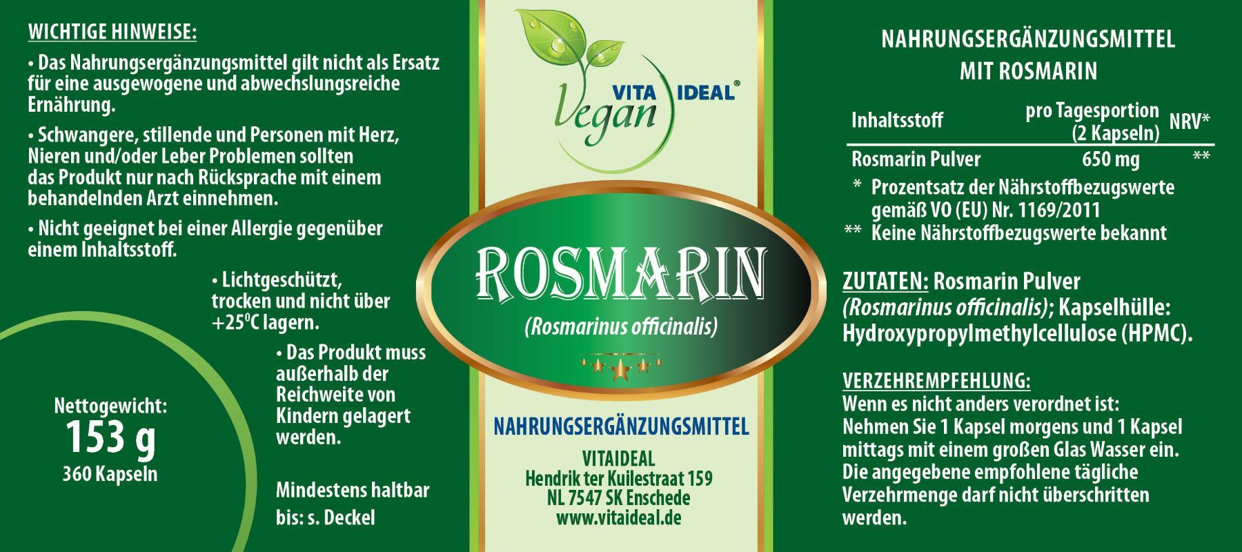 VITA IDEAL Vegan® Rosmarin Kapseln - Salvia rosmarinus -