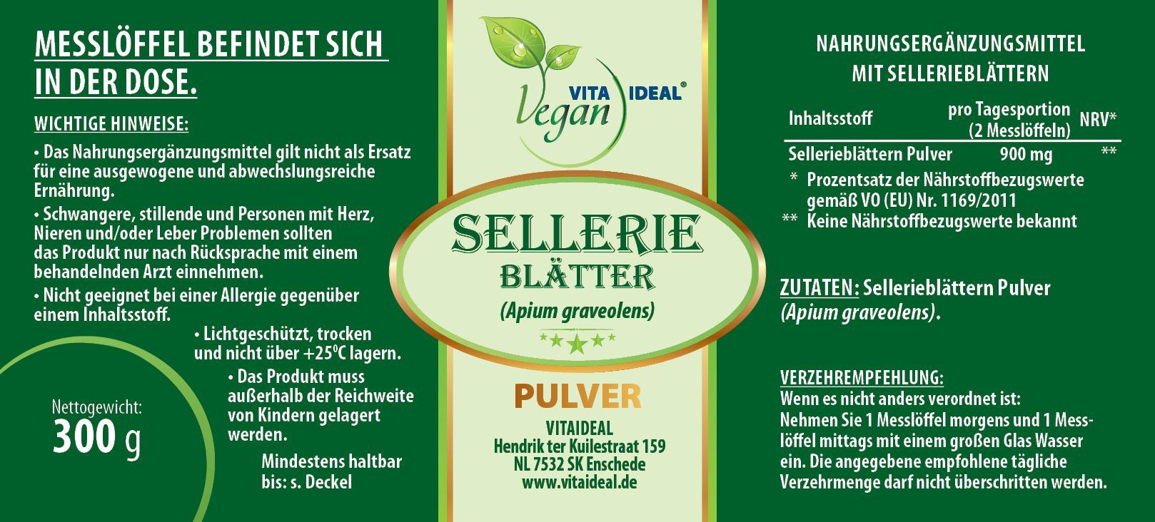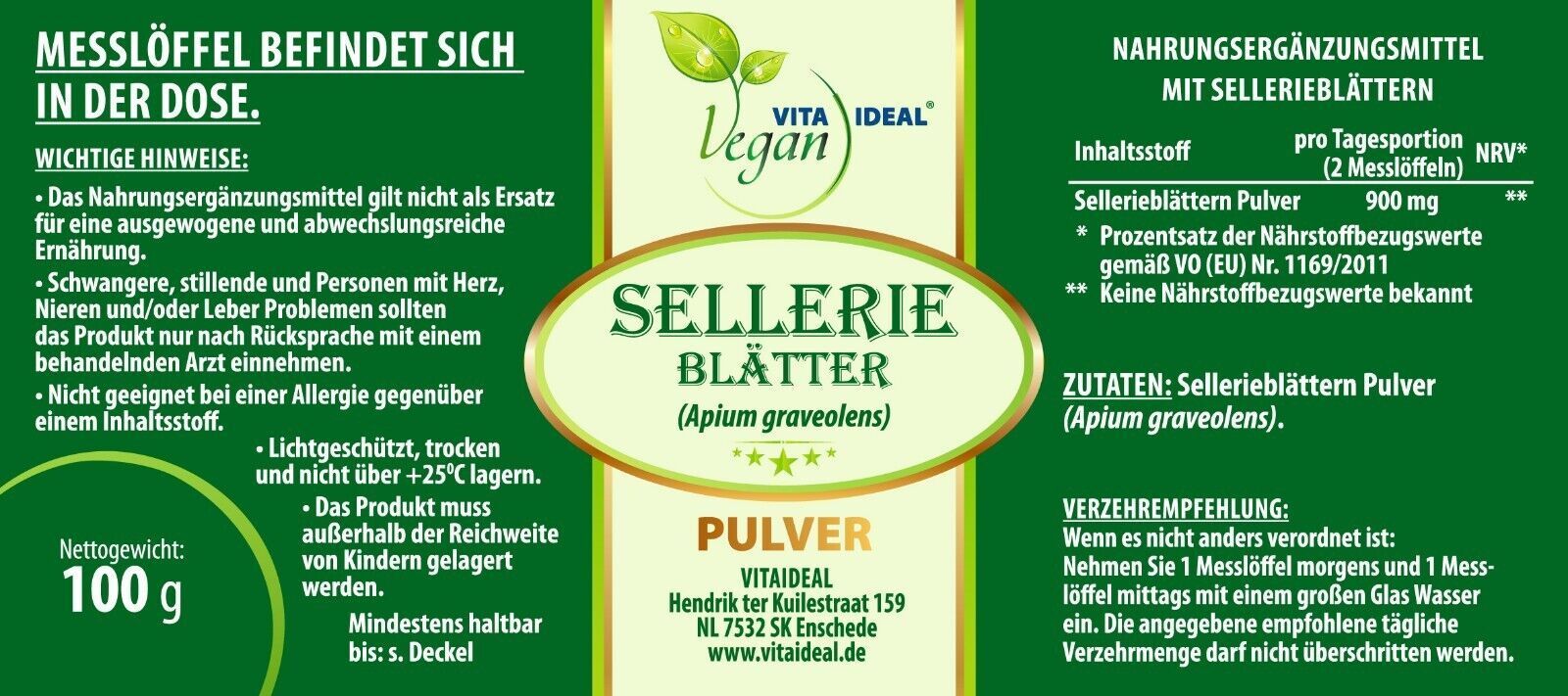 VITA IDEAL Vegan® Sellerie Blätter Pulver - Apium graveolens- Tagesportion 900mg