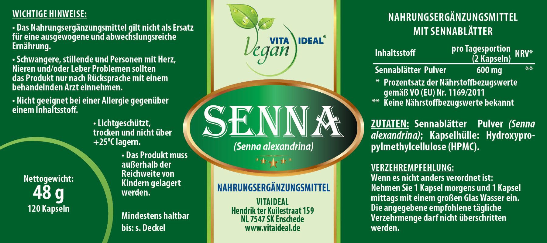 VITA IDEAL Vegan® Senna Kapseln - alexandrina - Sennesblätter - Sennablätter