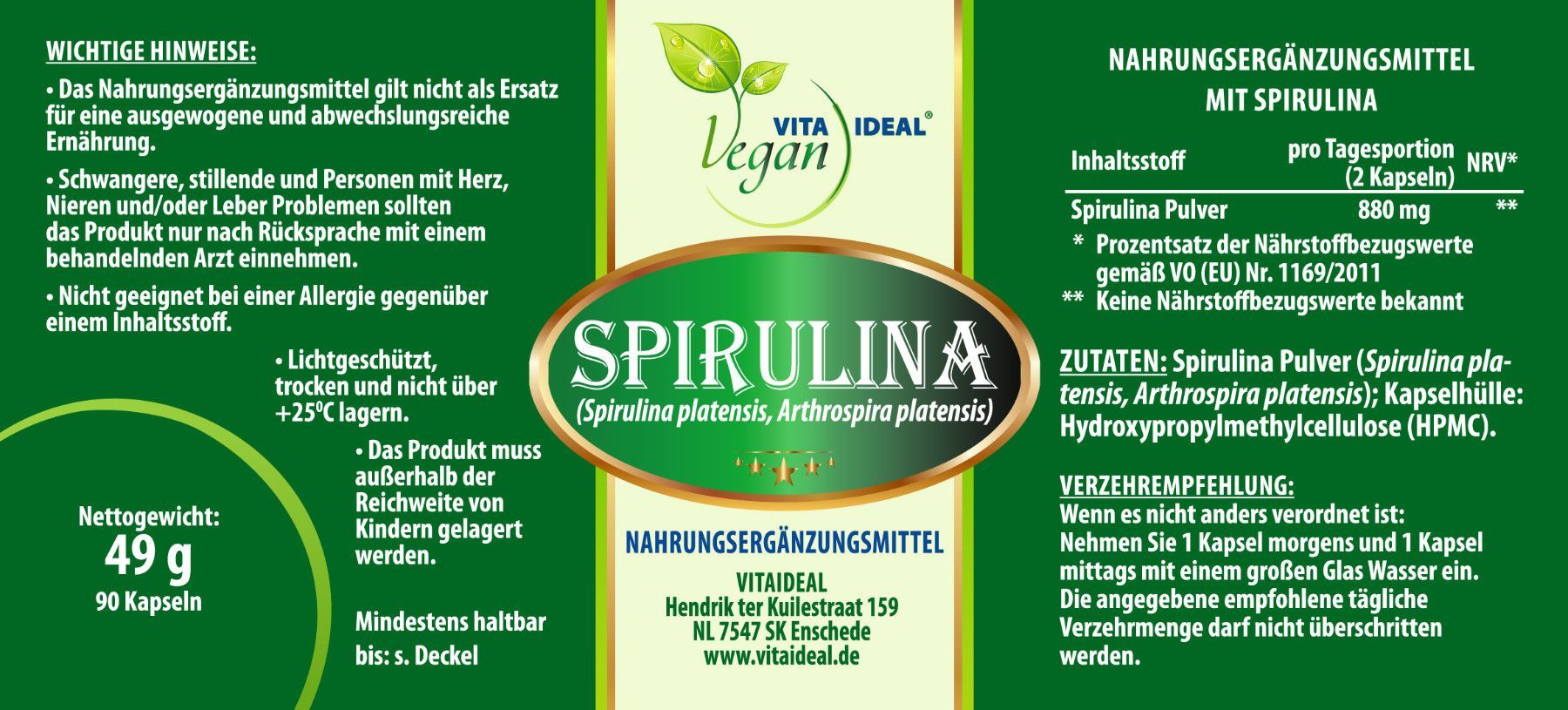 VITA IDEAL Vegan® Spirulina Kapseln - blaue Alge - Platensis Arthrospira -