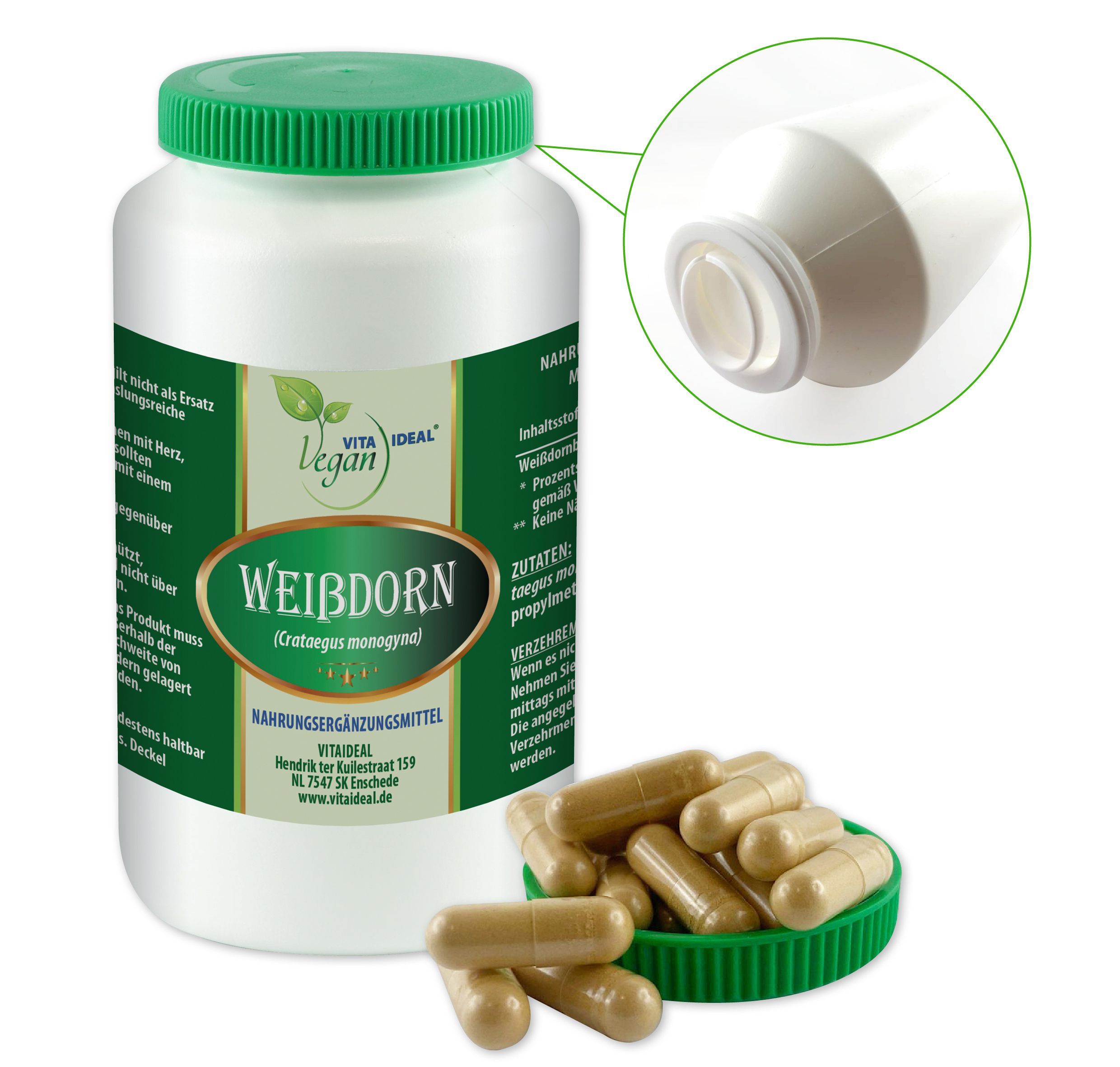 VITA IDEAL Vegan® Weißdorn Beeren Kapseln -Crataegus Fruct- Tagesportion 1000mg