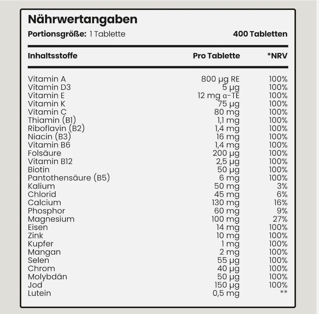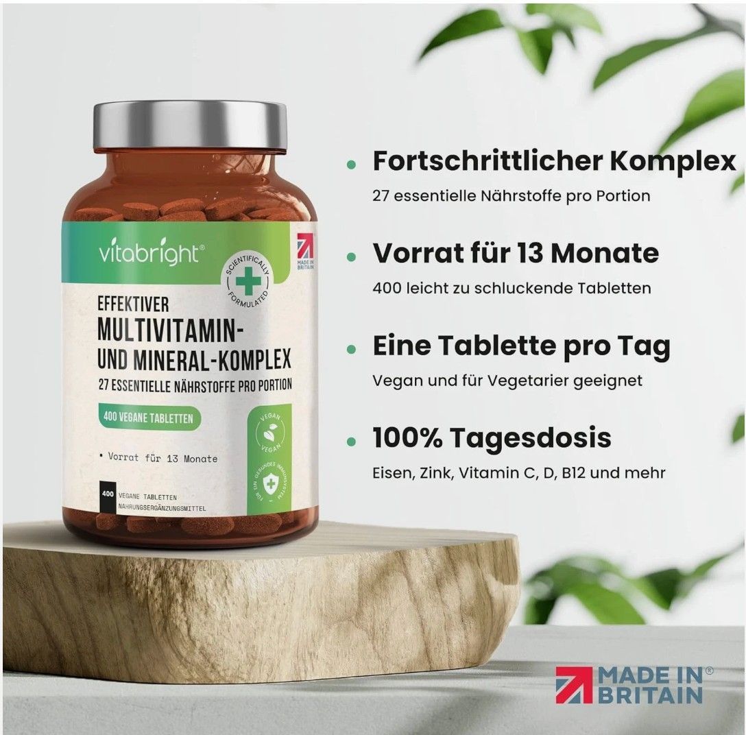 Vitabright Multivitamin Komplex-400 Tabletten A-Z Vitamine & Mineralstoffe-Vegan