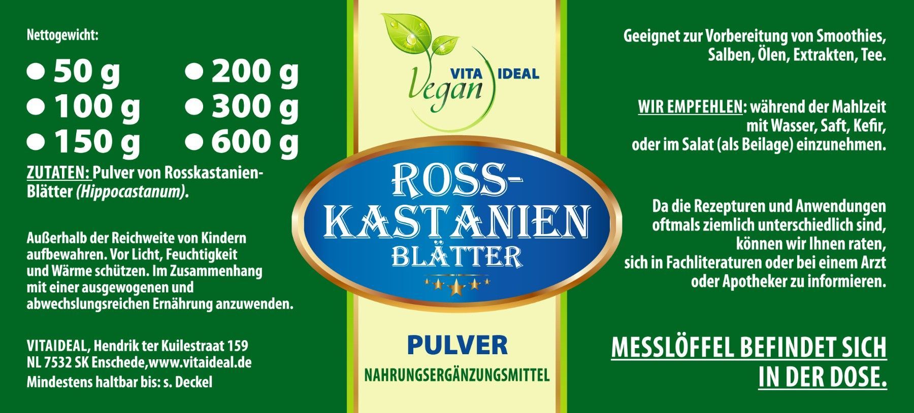 Vitaideal VEGAN® Rosskastanien Blätter Pulver, rein natürlich ohne Zusatz