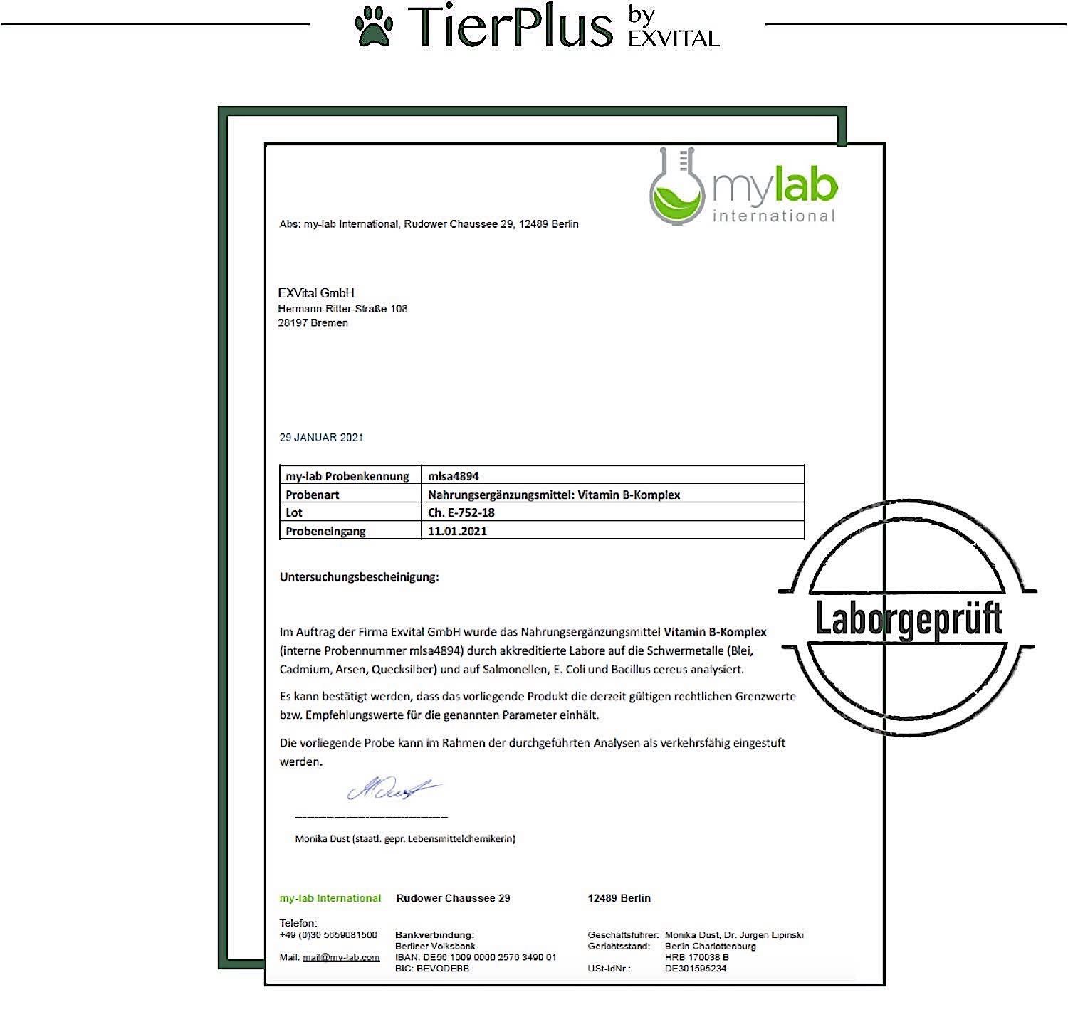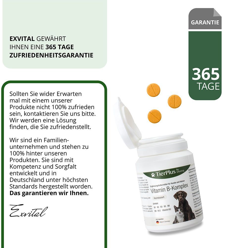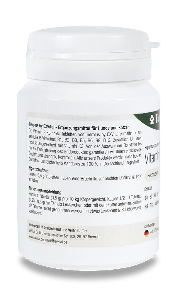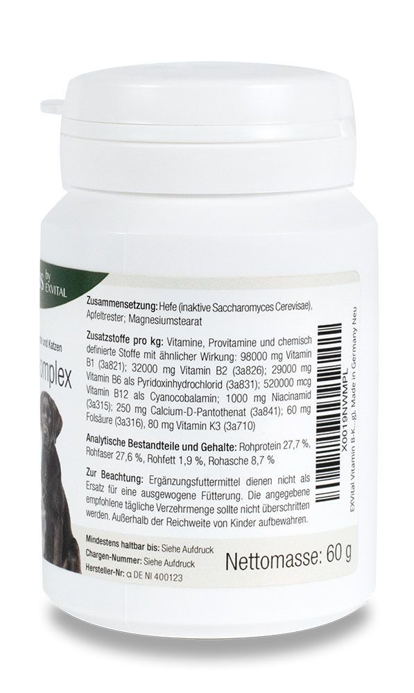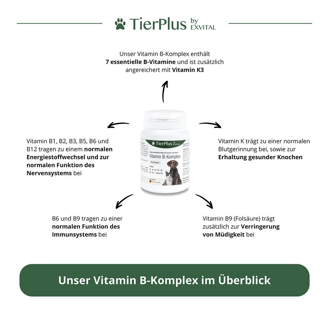 Vitamin B Komplex für Hunde & Katzen Vitamin B1, B2, B3, B5, B6, B9, B12, K3 EXVital