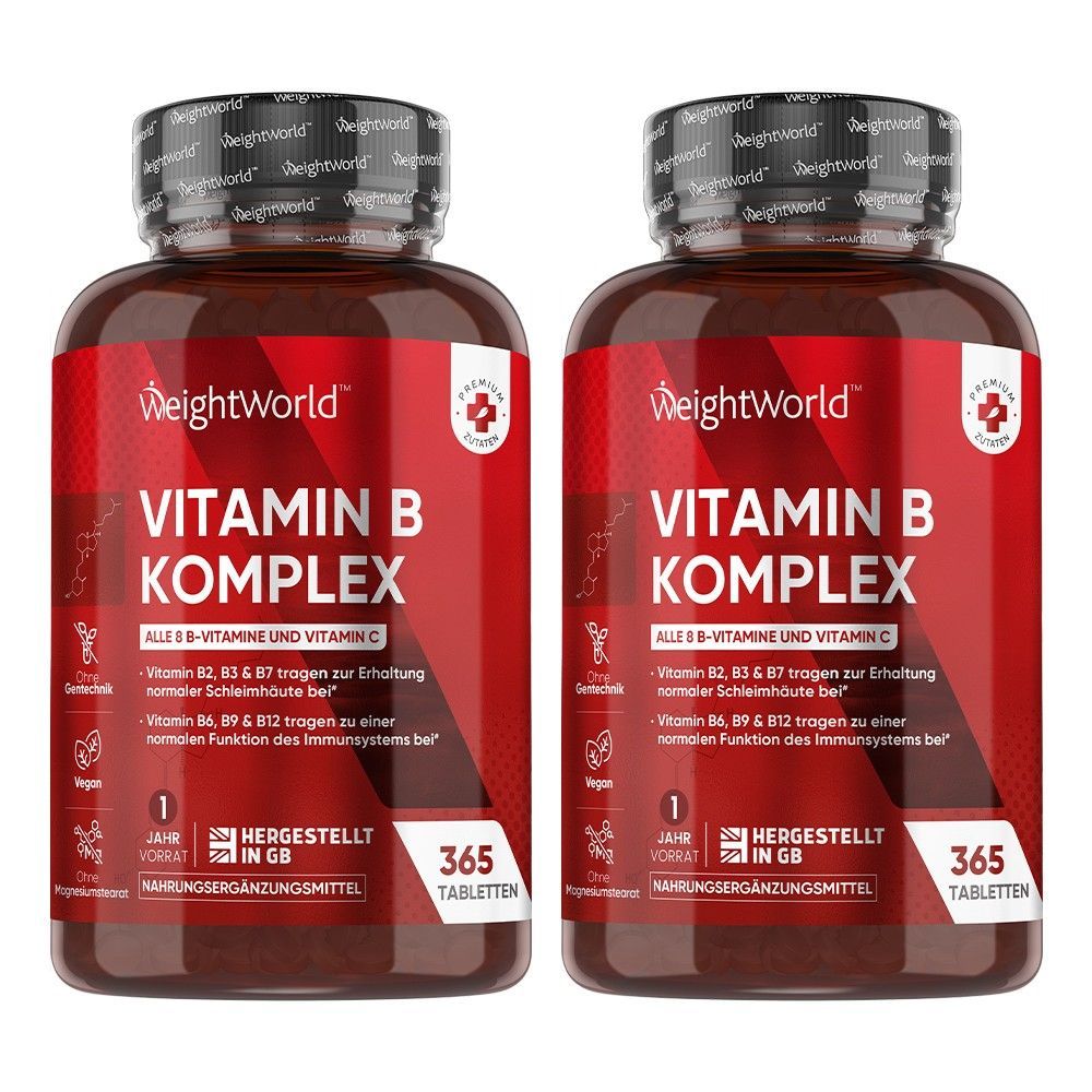 Vitamin B Komplex mit Vitamin C - 365 Tabletten - 2 Flaschen - WeightWorld