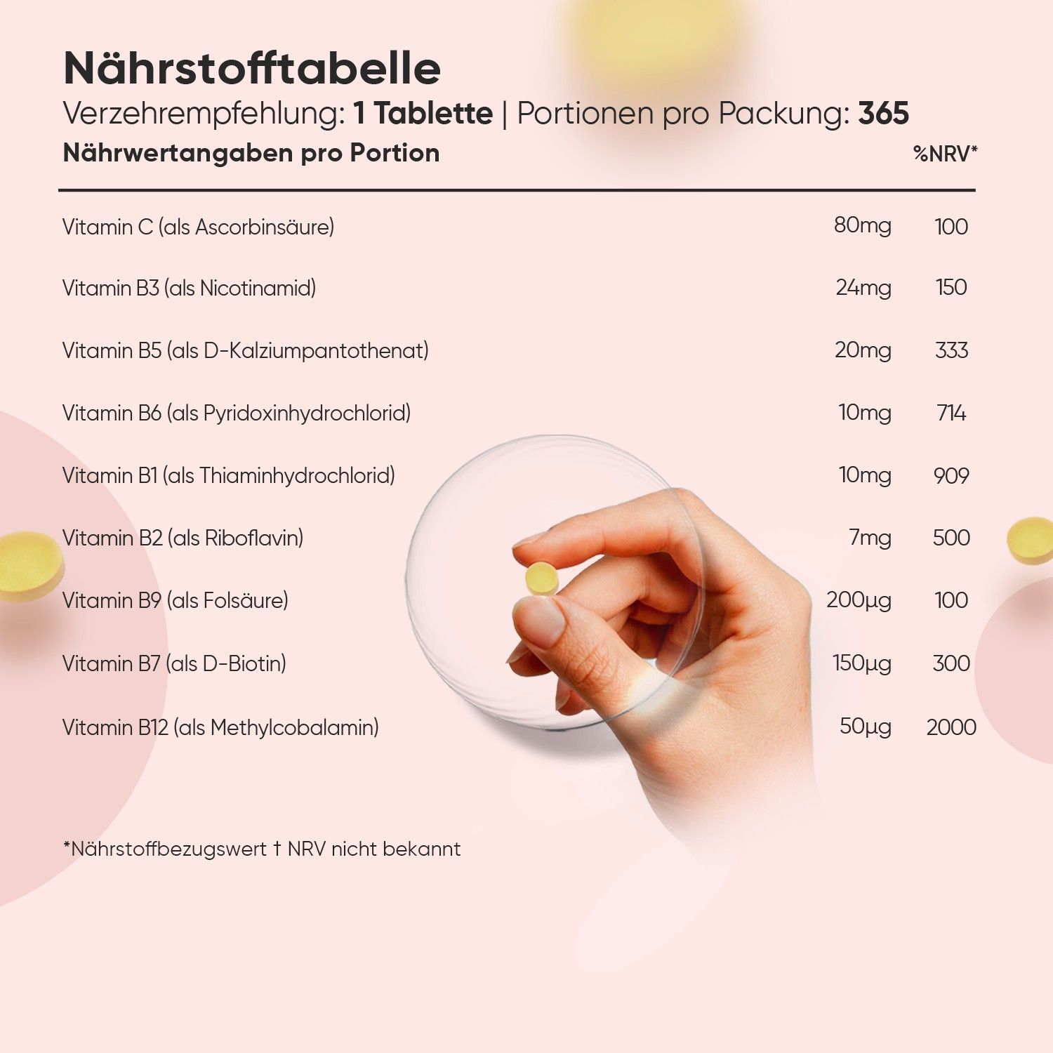 Vitamine (B1, B2, B3, B5, B6, B7, B9, B12) - 1 Jahr Vorrat & Vegan