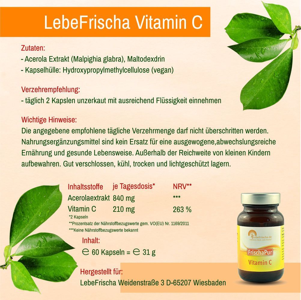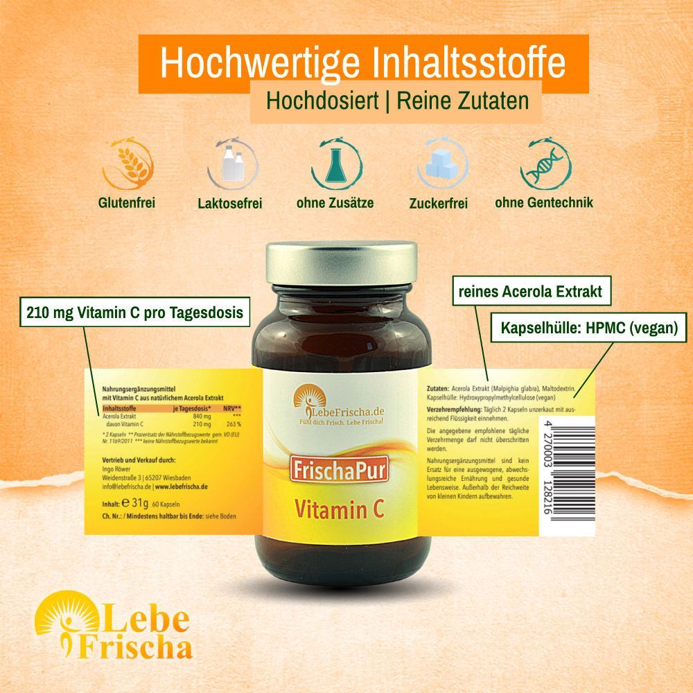 Vitamin C 100% Acerola Extrakt für Energie & Immunabwehr