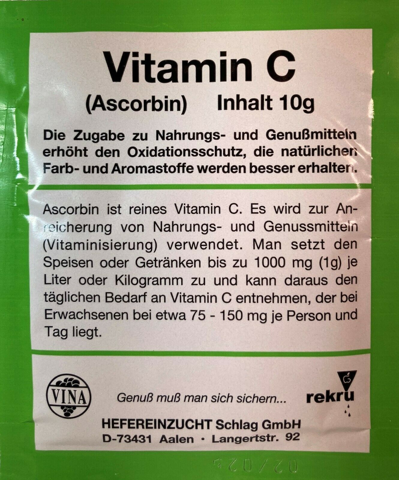 Vitamin C - Ascorbin - Ascorbinsäure - E300 - Vina Oxidationsschutz 10 gr.