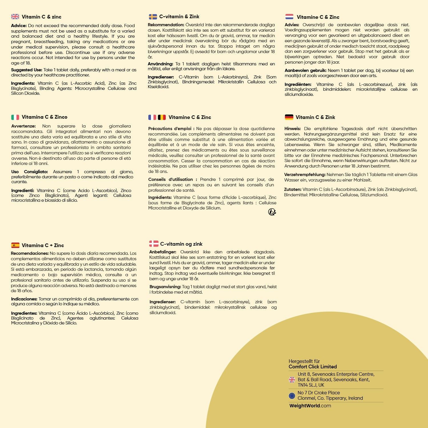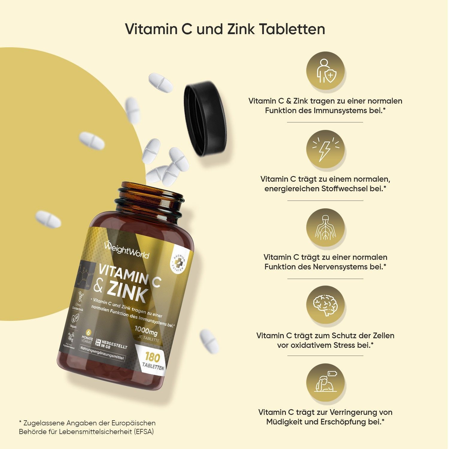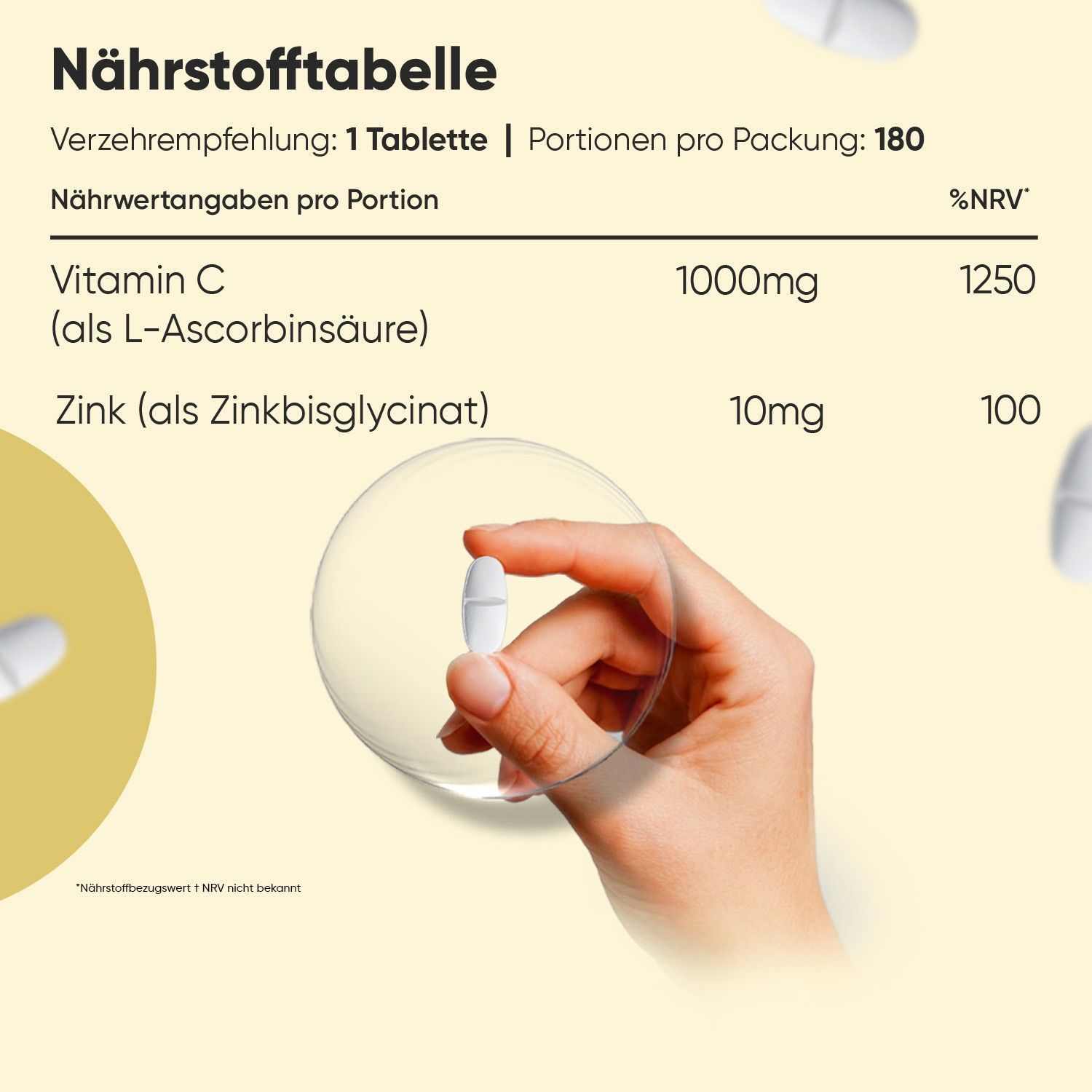 Vitamin C & Zink Tabletten - 6 Monate Vorrat - 1000mg Vitamin C pro Tablette
