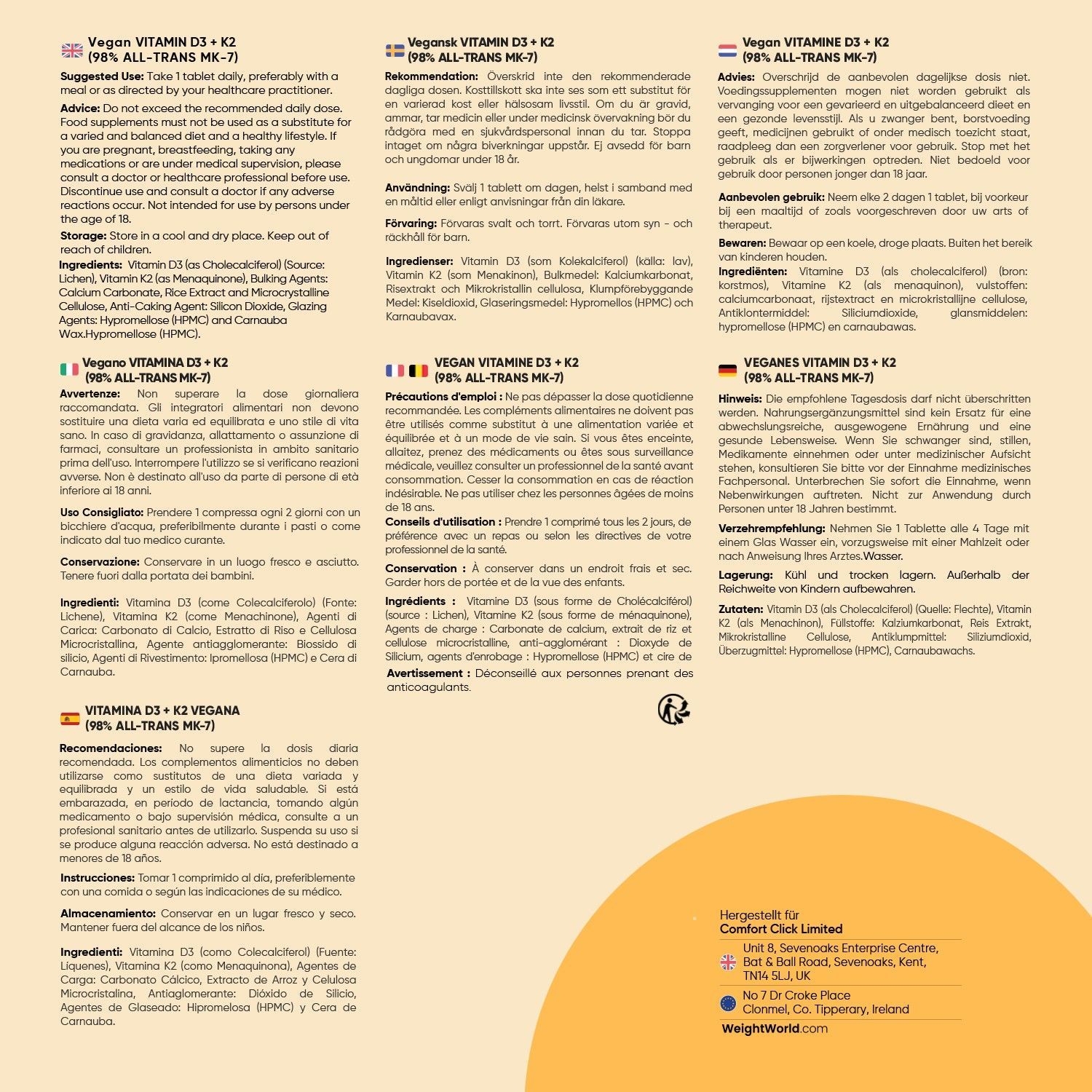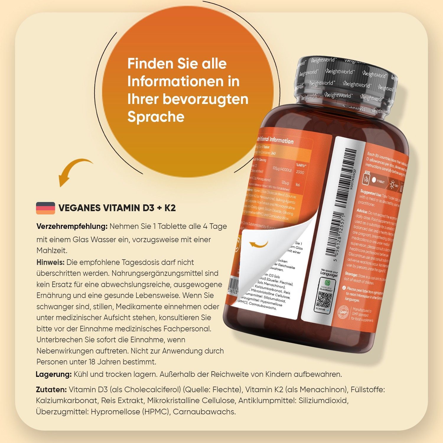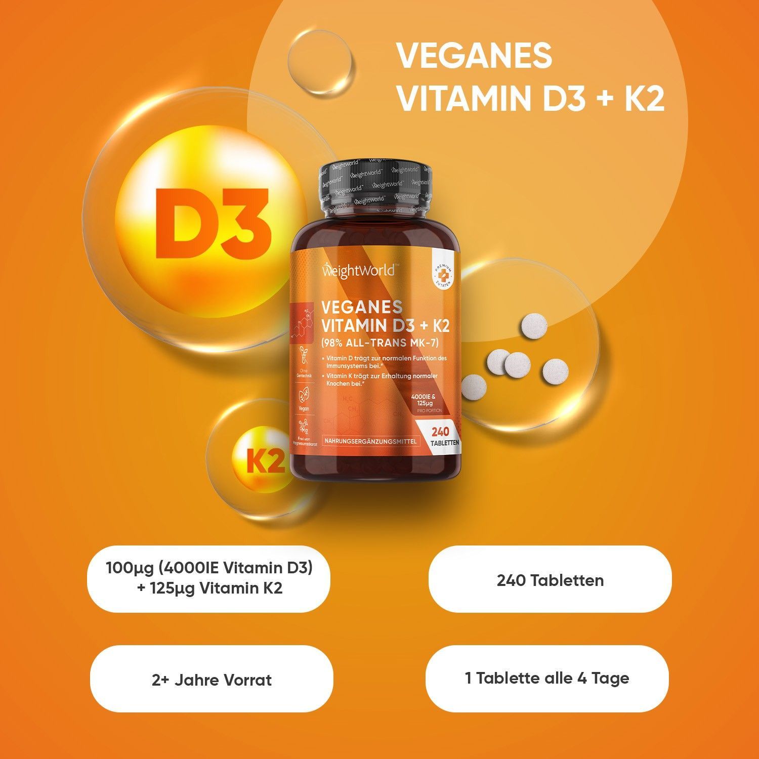 Vitamin D3 + K2 Vegan - 4000 I.E. pro Portion - 240 Tabletten - 1 Tablette/4 Tage