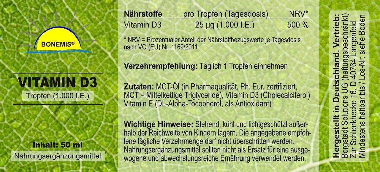 Vitamin D3 Tropfen, 1.000 IE, 50 ml (Ph. Eur. MCT-Öl), Bonemis®