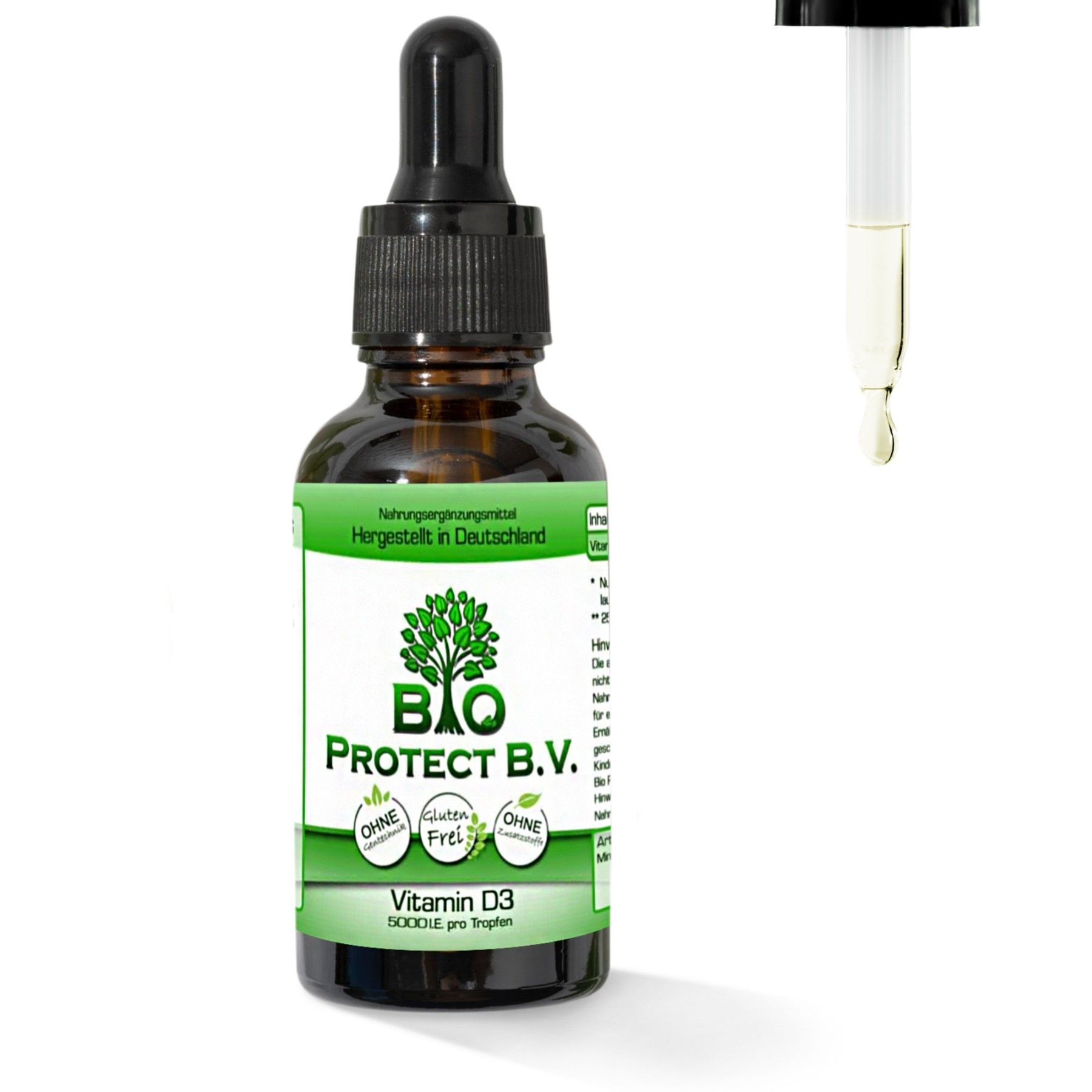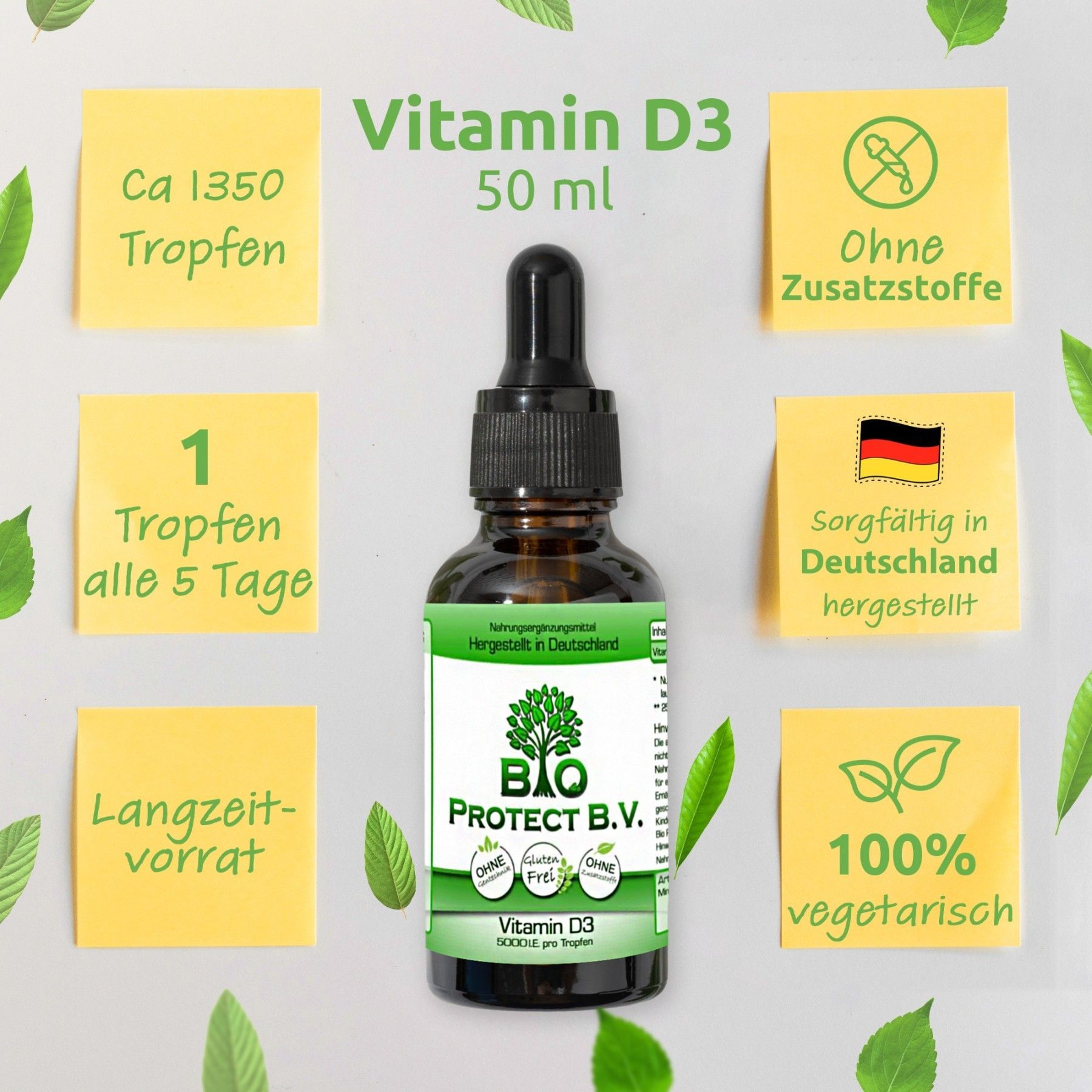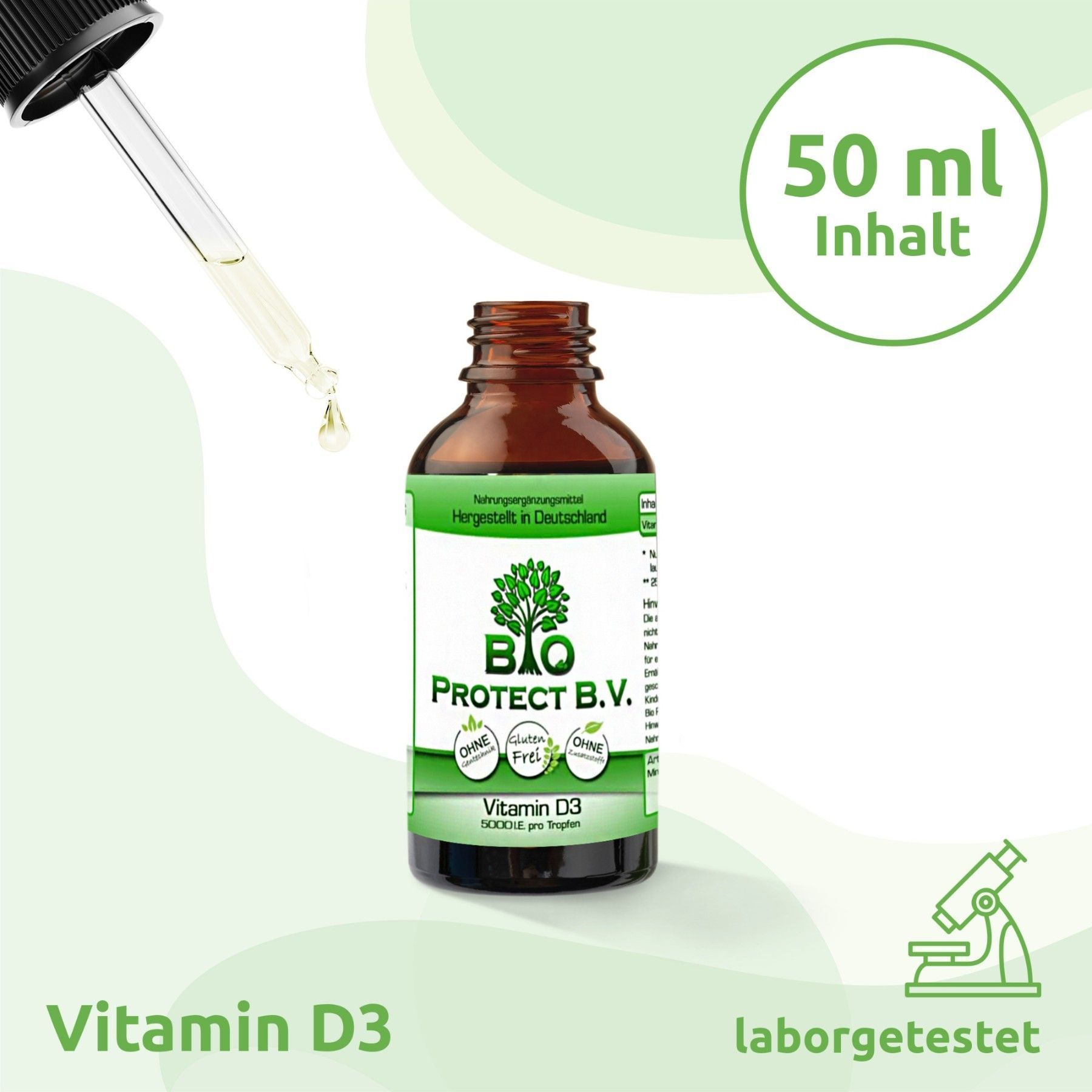 Vitamin D3 Tropfen 5000 IE - 50 ml - Bio Protect - In MCT-Öl aus Kokos - Vegetarisch
