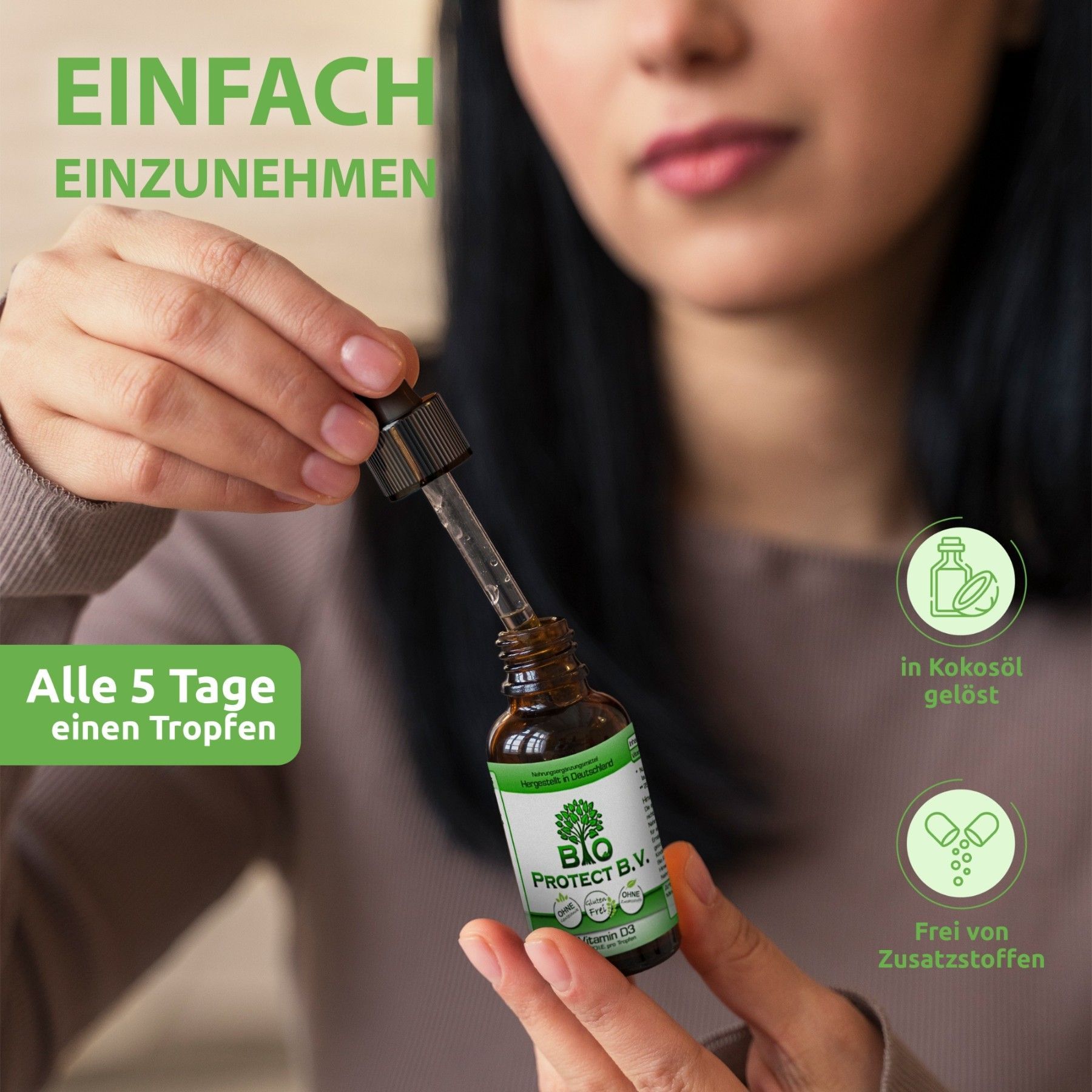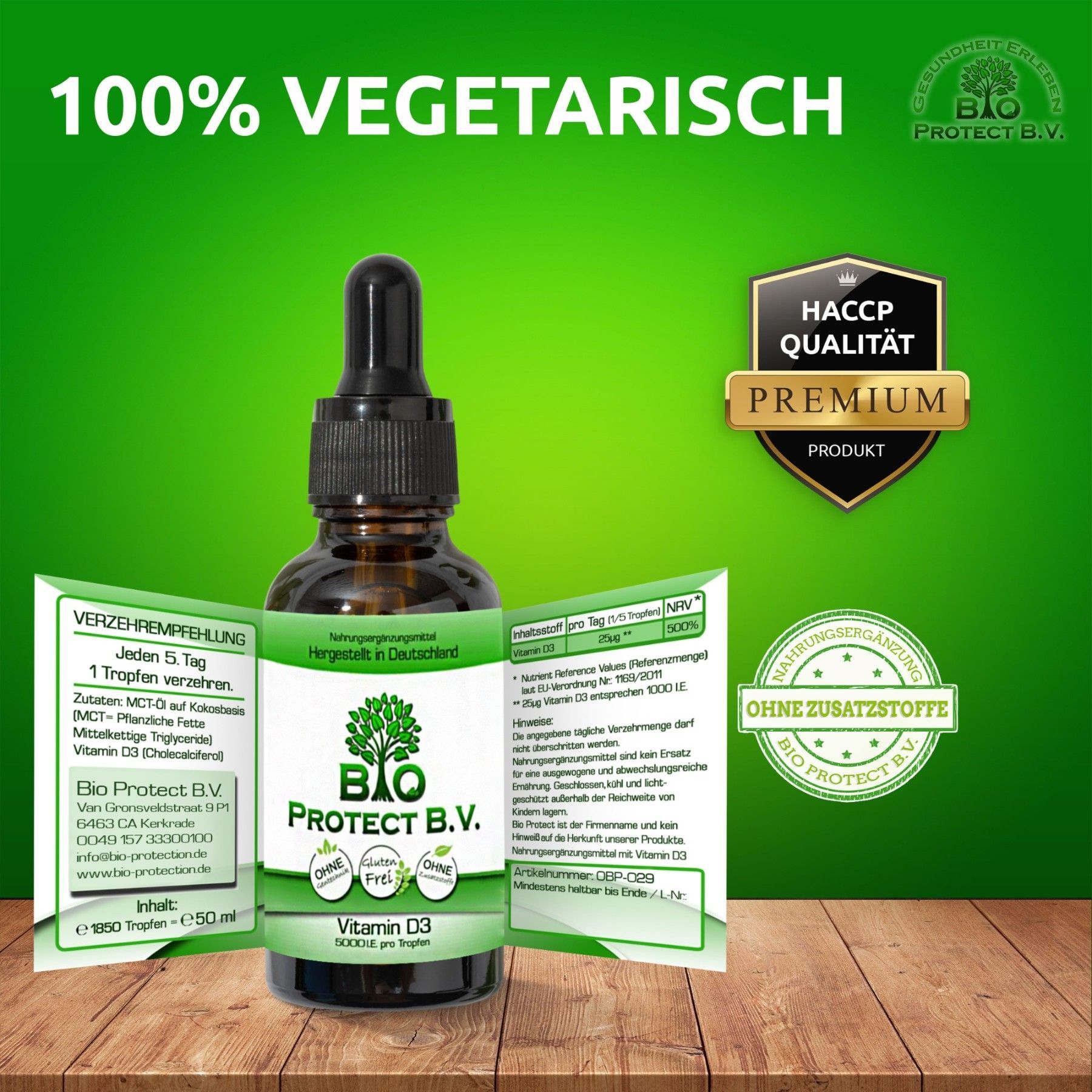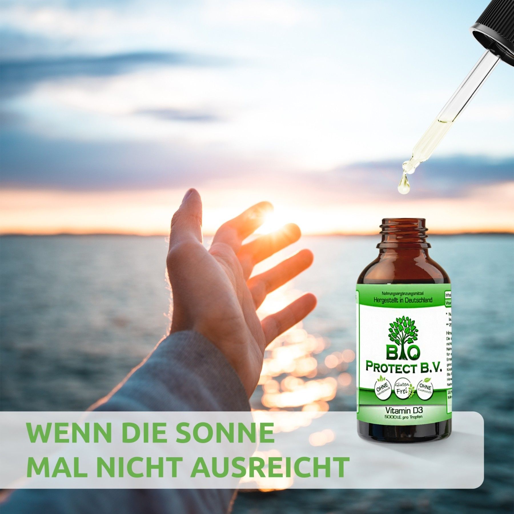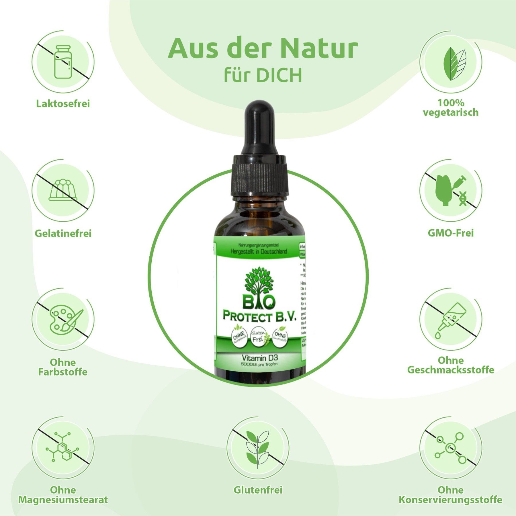 Vitamin D3 Tropfen 5000 IE - 50 ml - Bio Protect - In MCT-Öl aus Kokos - Vegetarisch