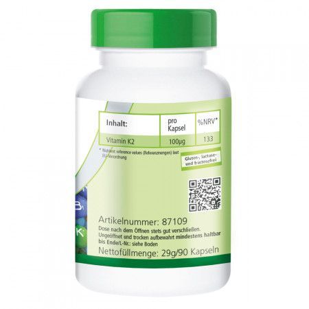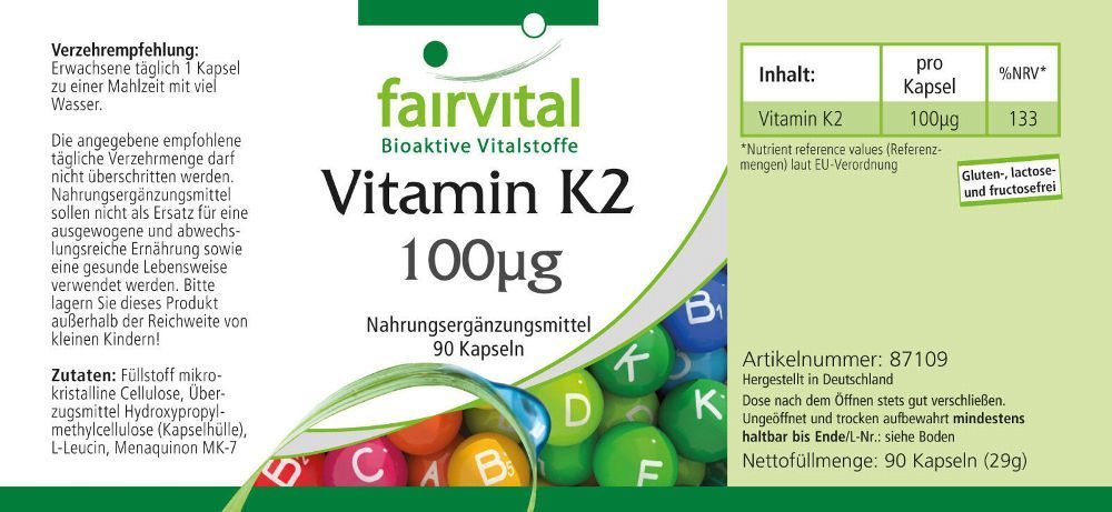 fairvital Vitamin K2 100µg 90 Kapseln natürliches Menaquinon MK7 - fairvital