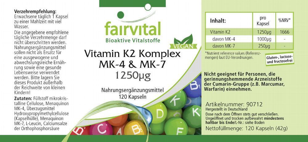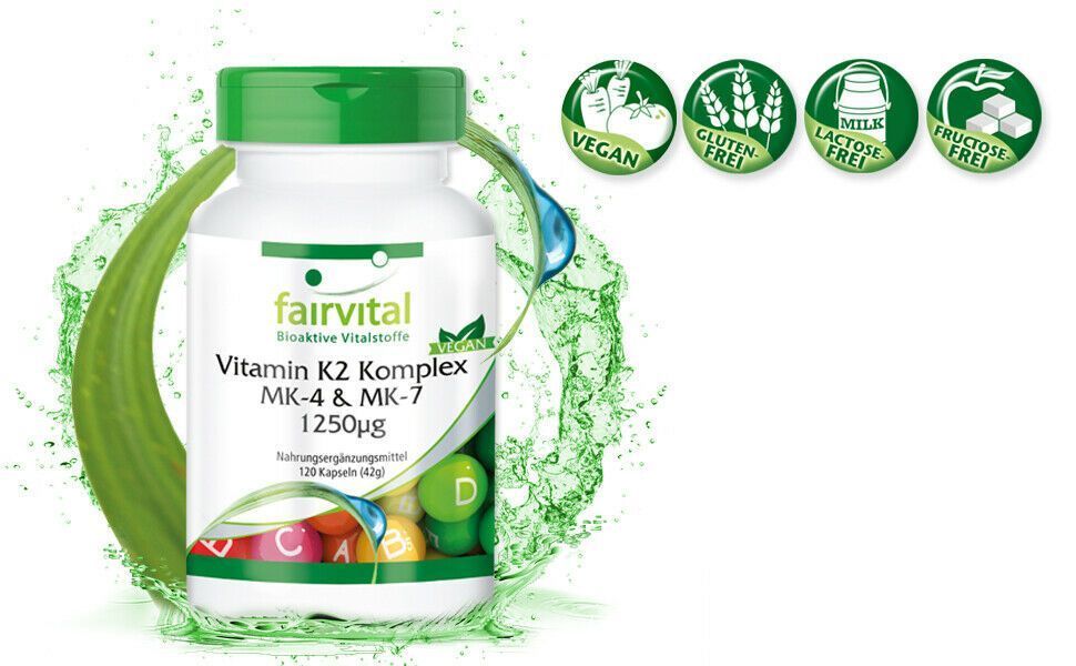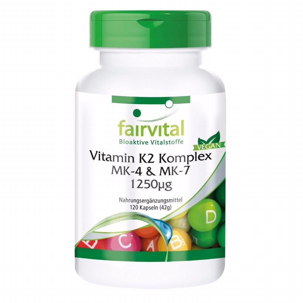 fairvital Vitamin K2 Komplex MK-4 & MK-7 1250µg - 120 Kapseln, hochdosiert - fairvital