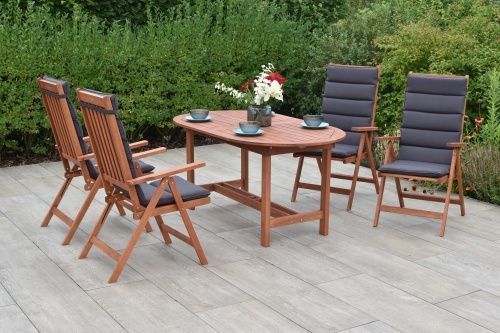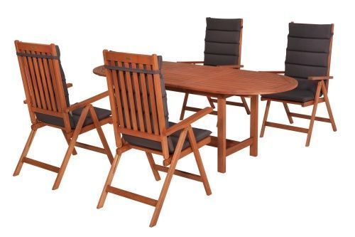 Merxx Vitoria Gartenmöbel Set 9tlg., 4 Klappsessel, 4 graue Auflagen, Ausziehtisch 160 (210