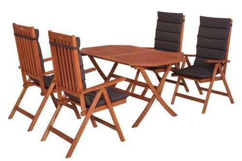 Merxx Vitoria Gartenmöbel Set 9tlg., 4 Klappsessel, 4 graue Auflagen, Klapptisch 135 x 85 c