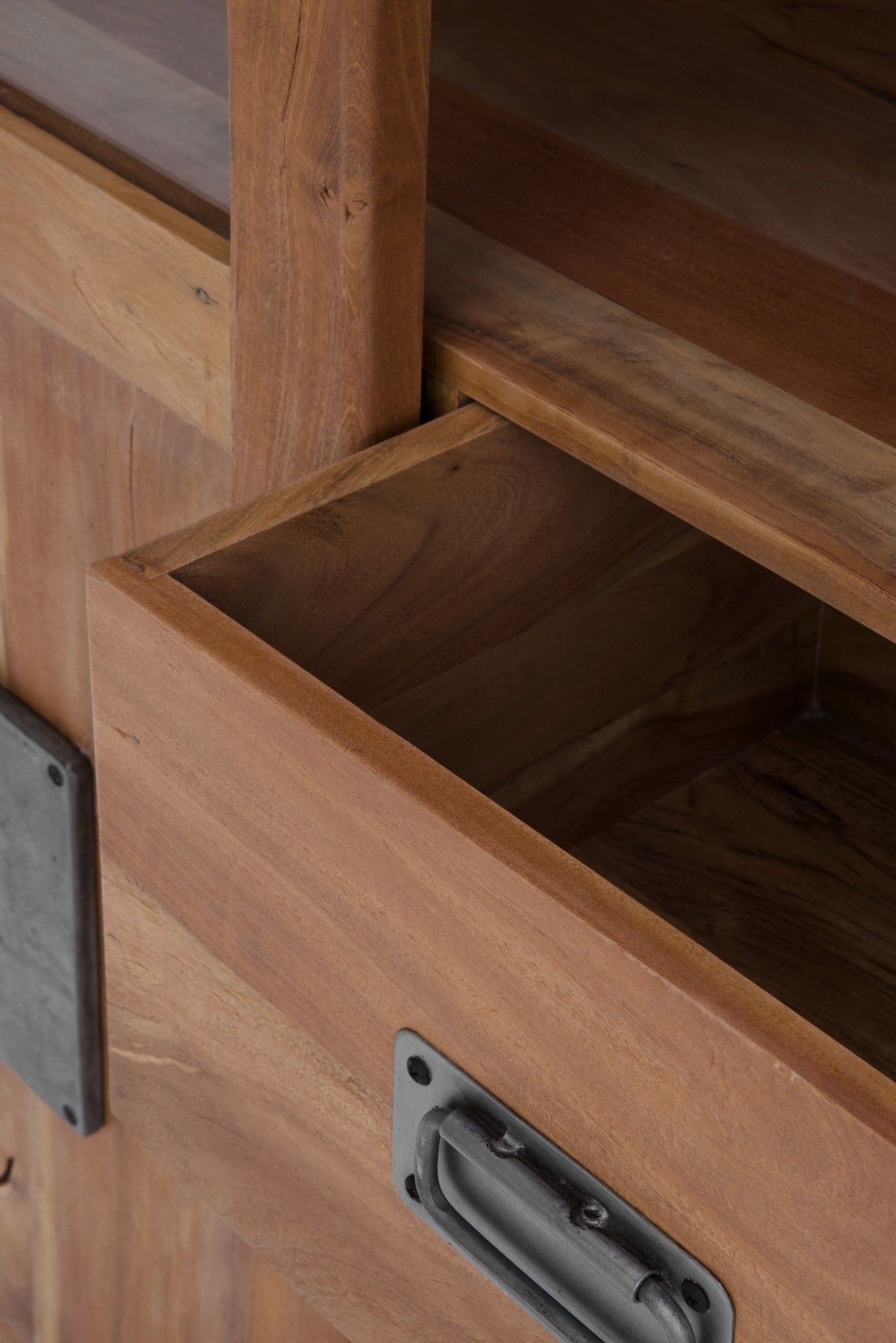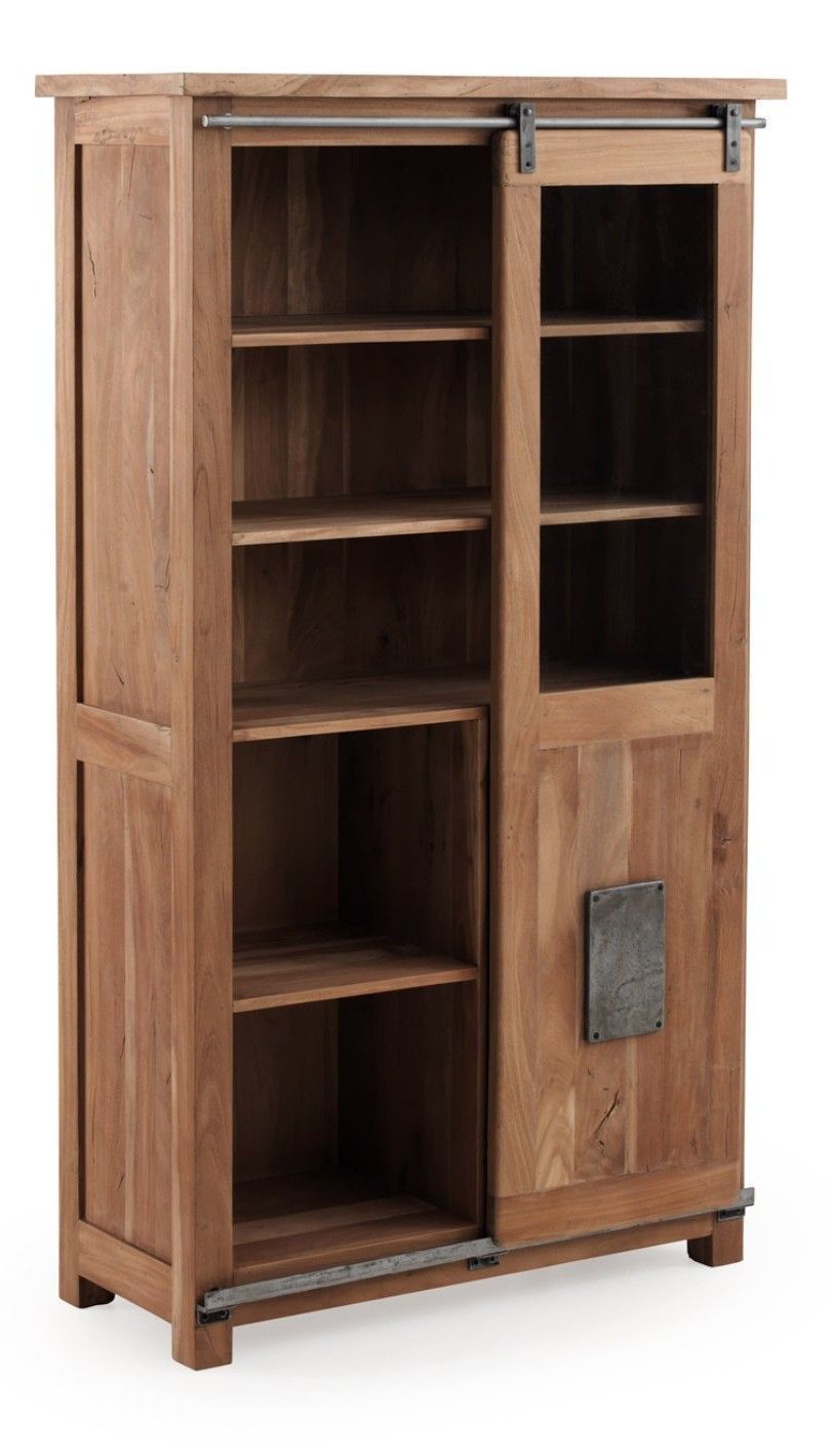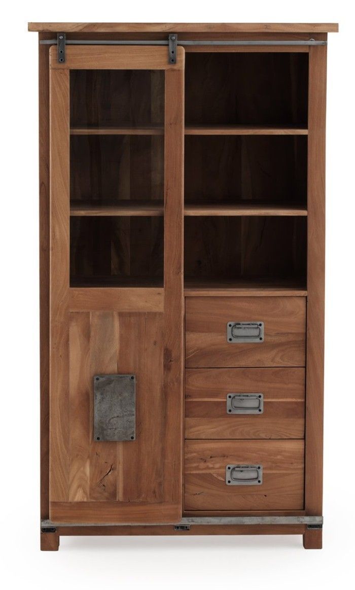 Vitrine aus recyceltem massivem Akazienholz