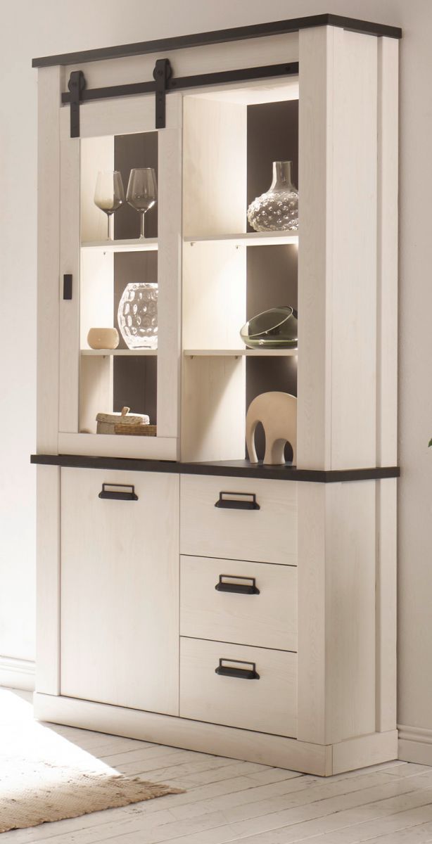 Vitrine Buffet Vitrinenschrank weiß Pinie Landhaus Wohn - Esszimmer 90x200 Stove