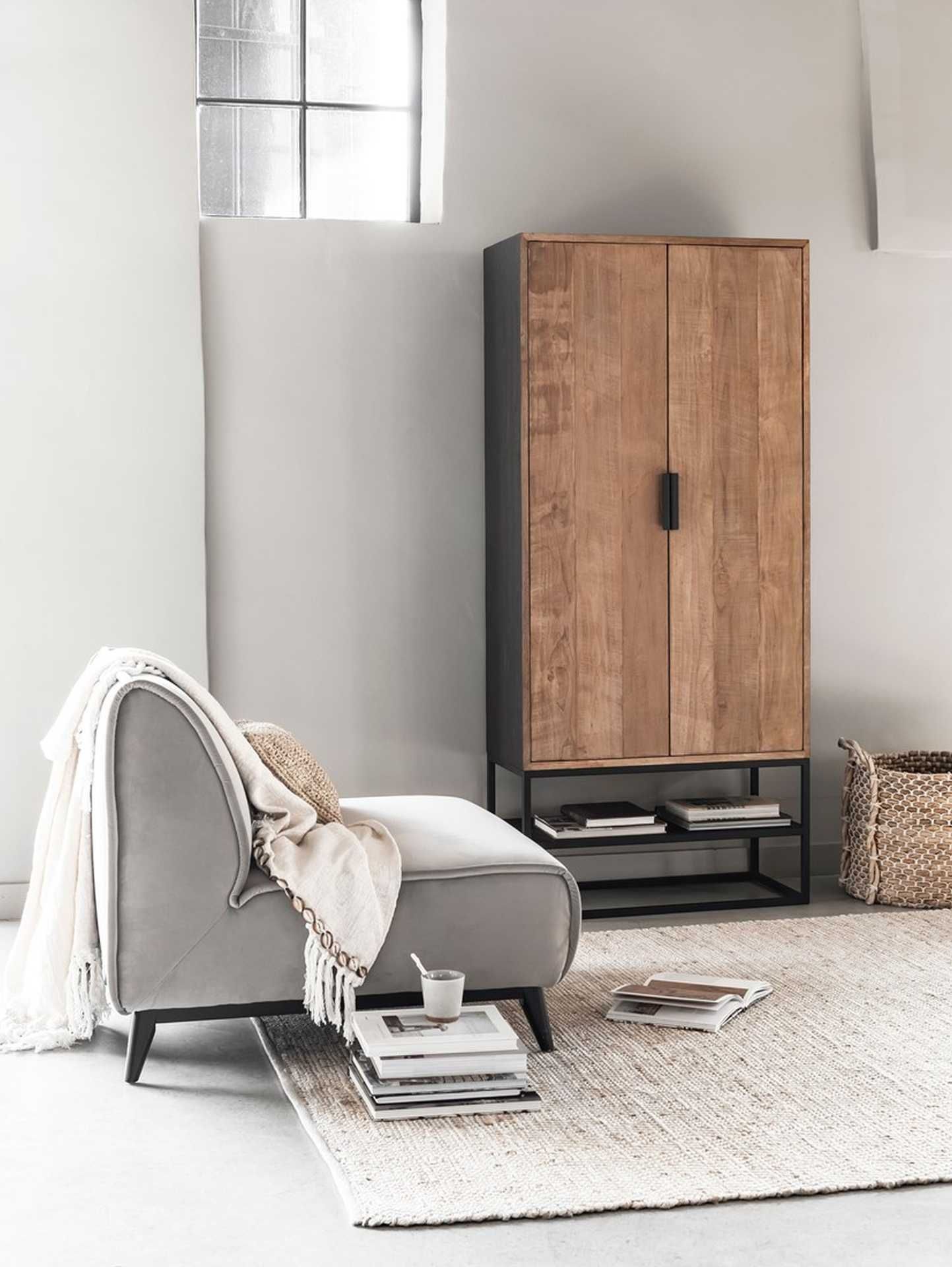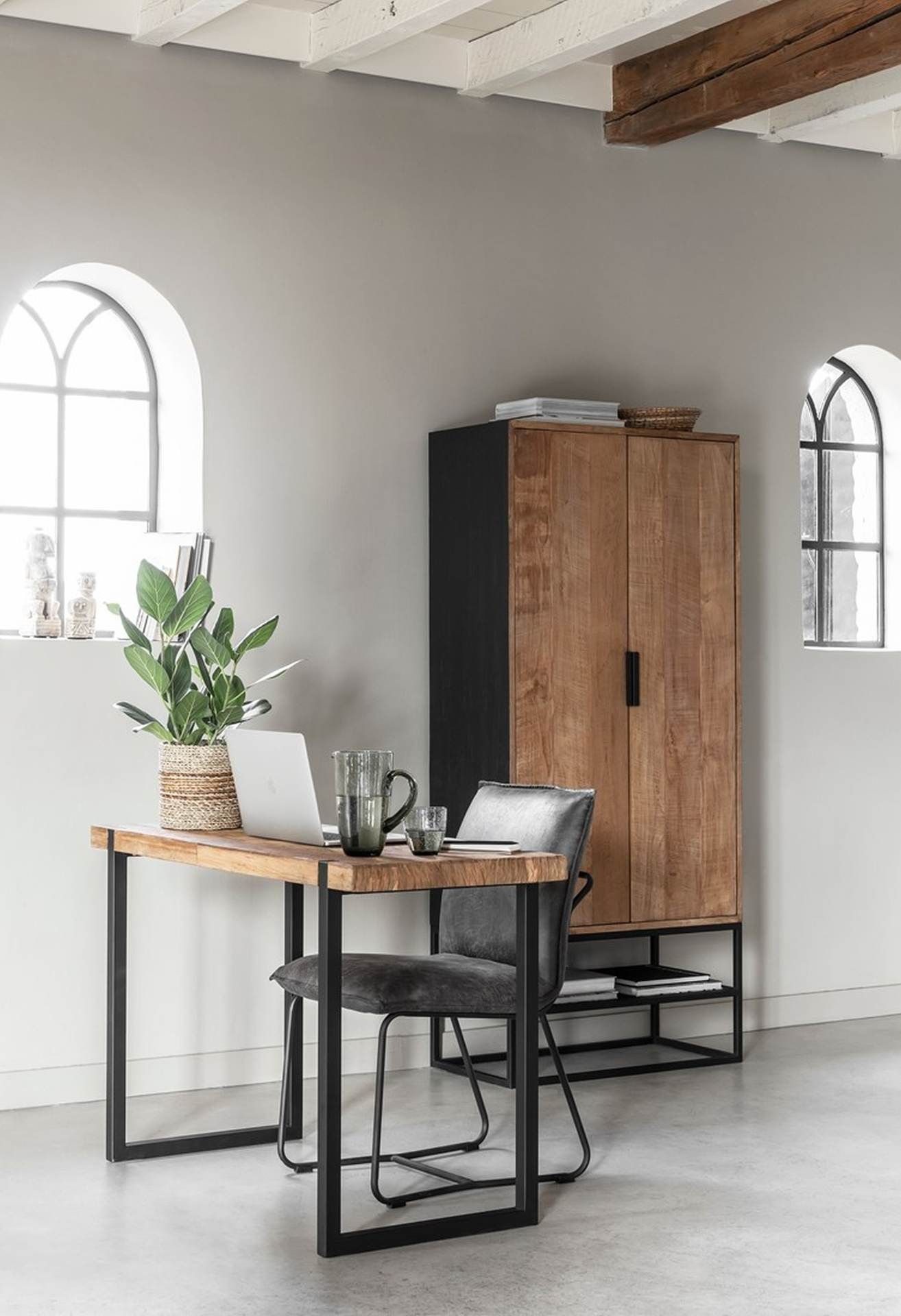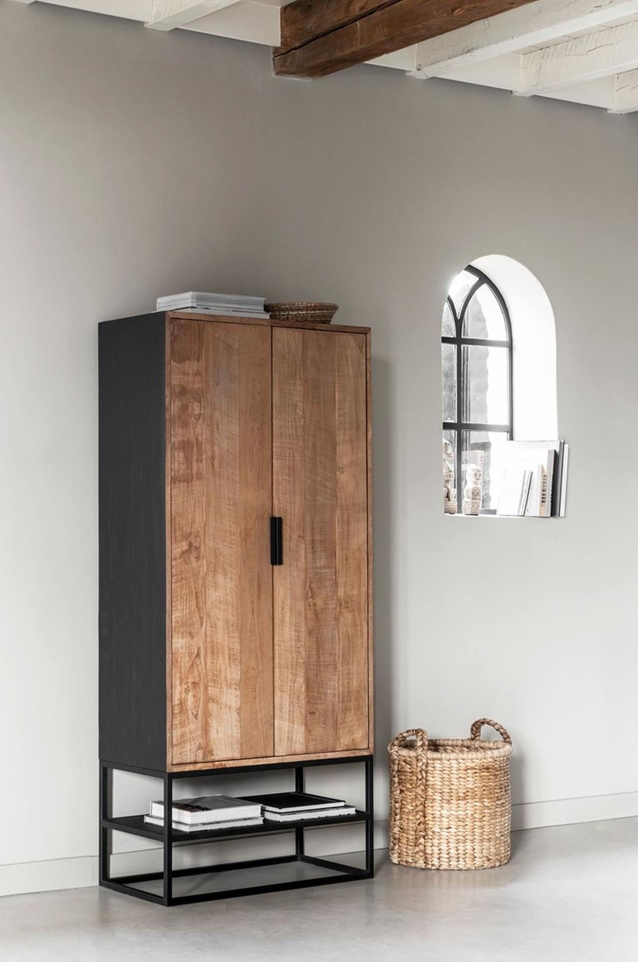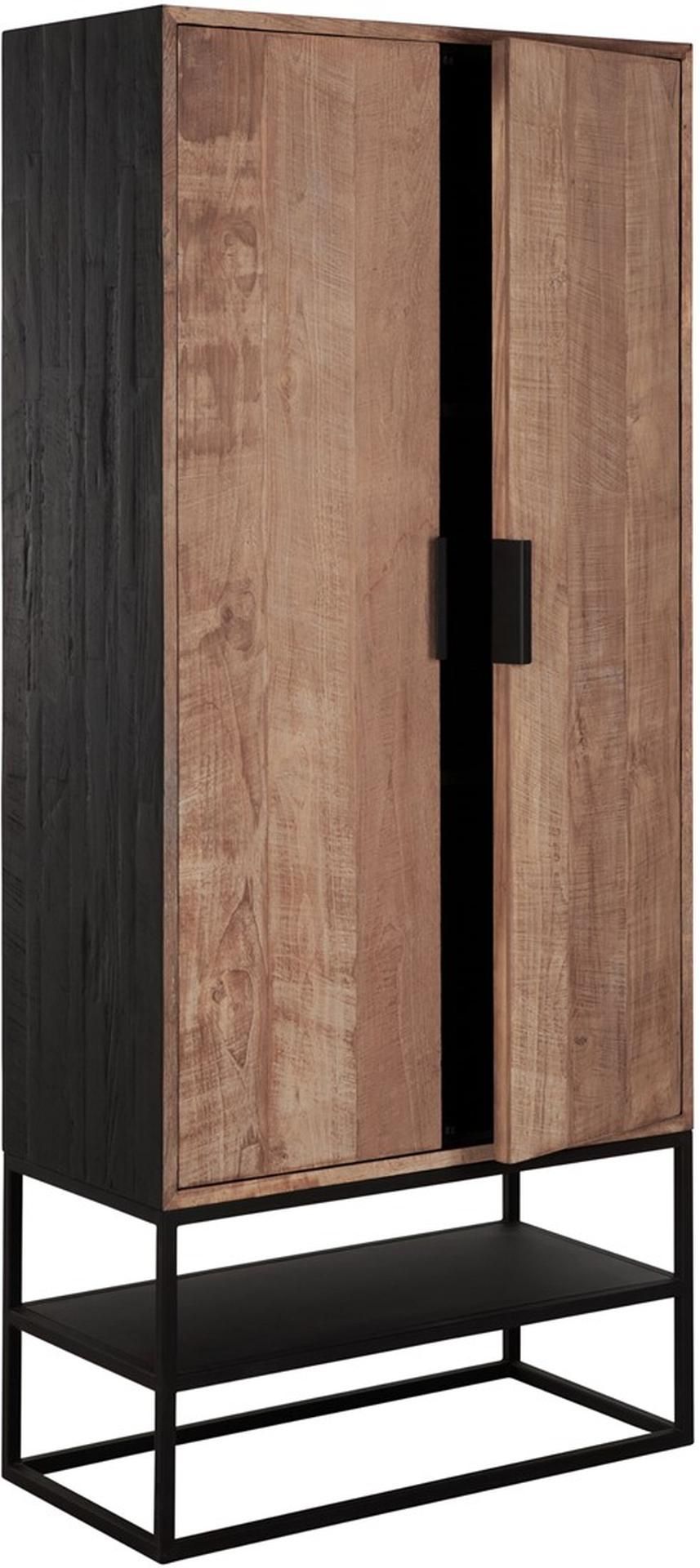 Vitrine Cosmo aus recyceltem Teakholz, Industrial Design, natur schwarz,