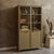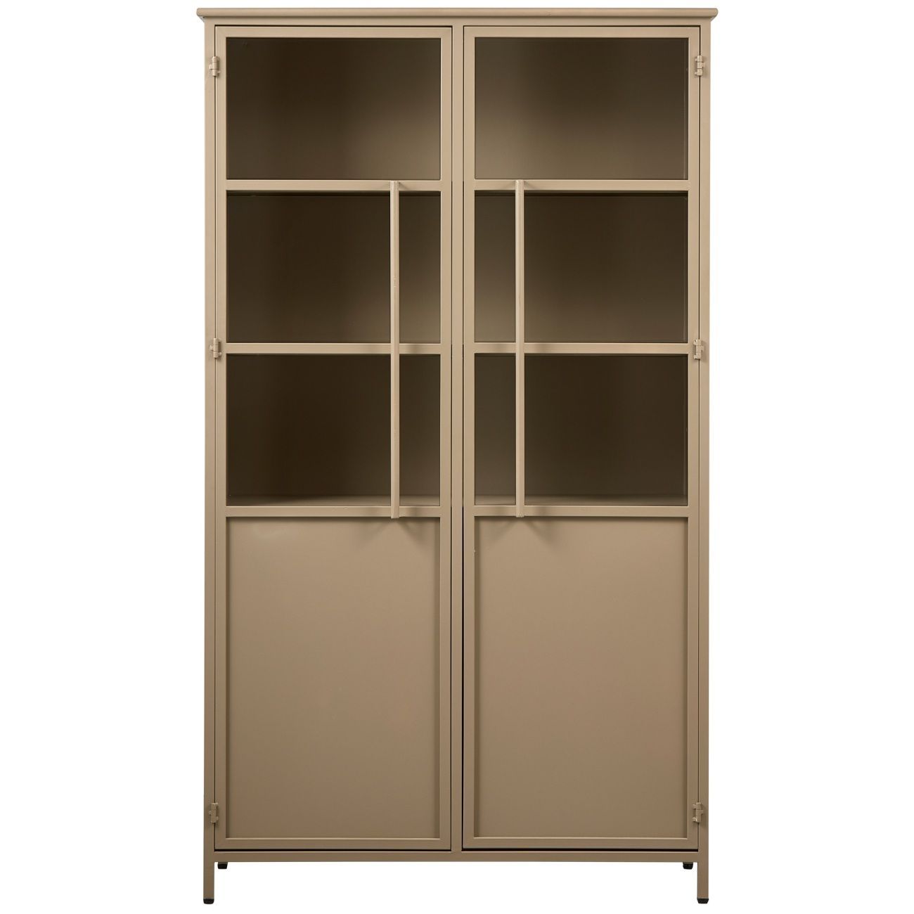 Vitrine Exhibit aus Metall und Glas, modern industrial, kaki grün, 2 Türen, 4