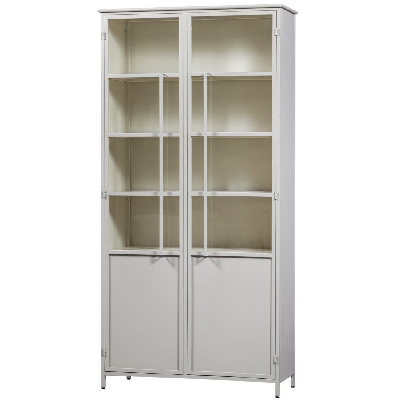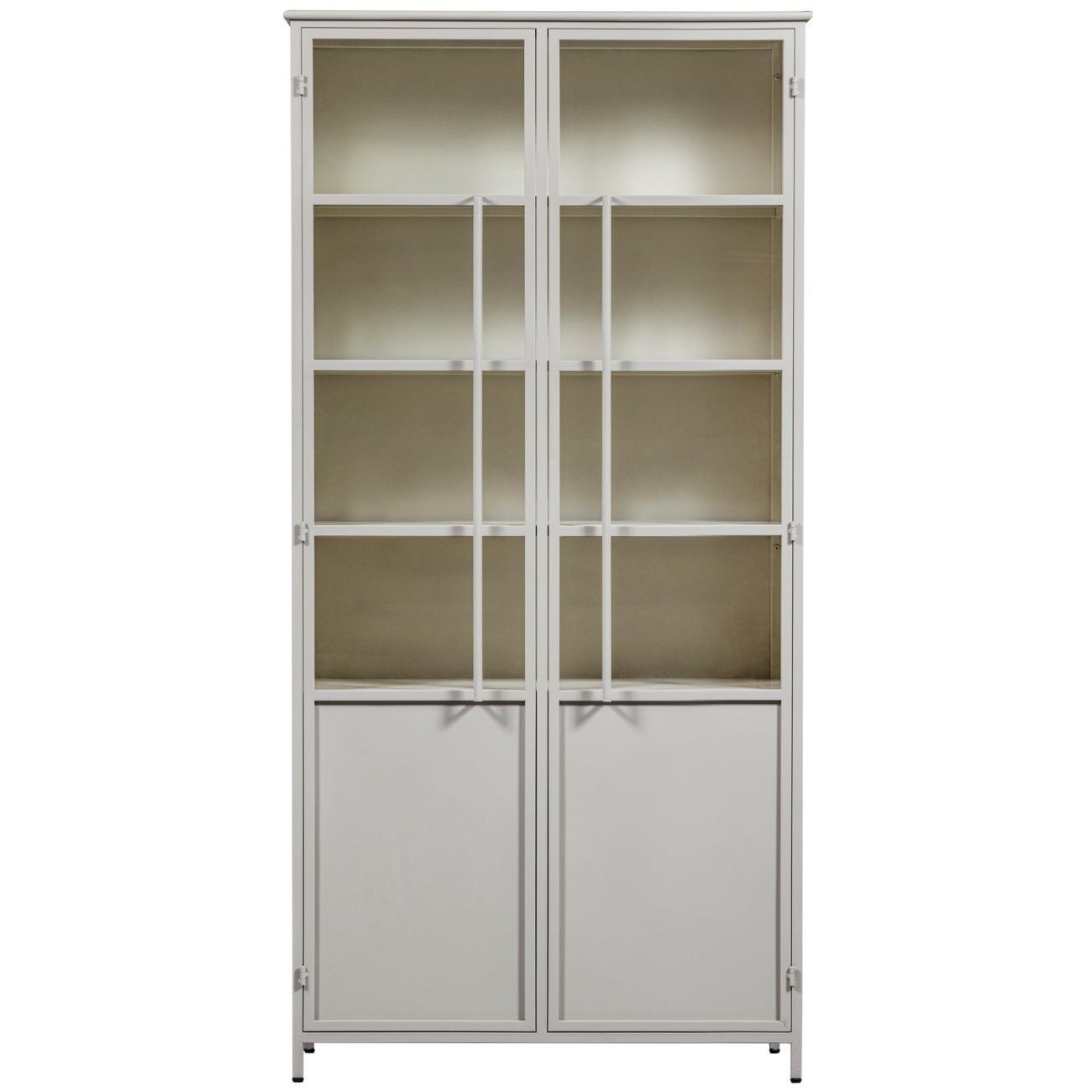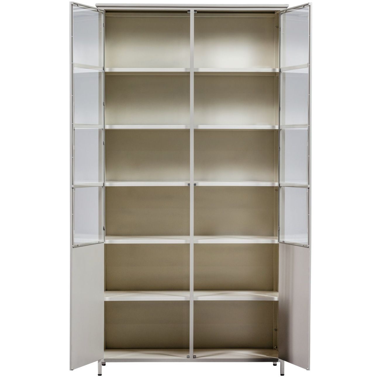 Vitrine Exhibit XL aus Metall, Industrial Design, sandfarben, pulverbeschichtet,