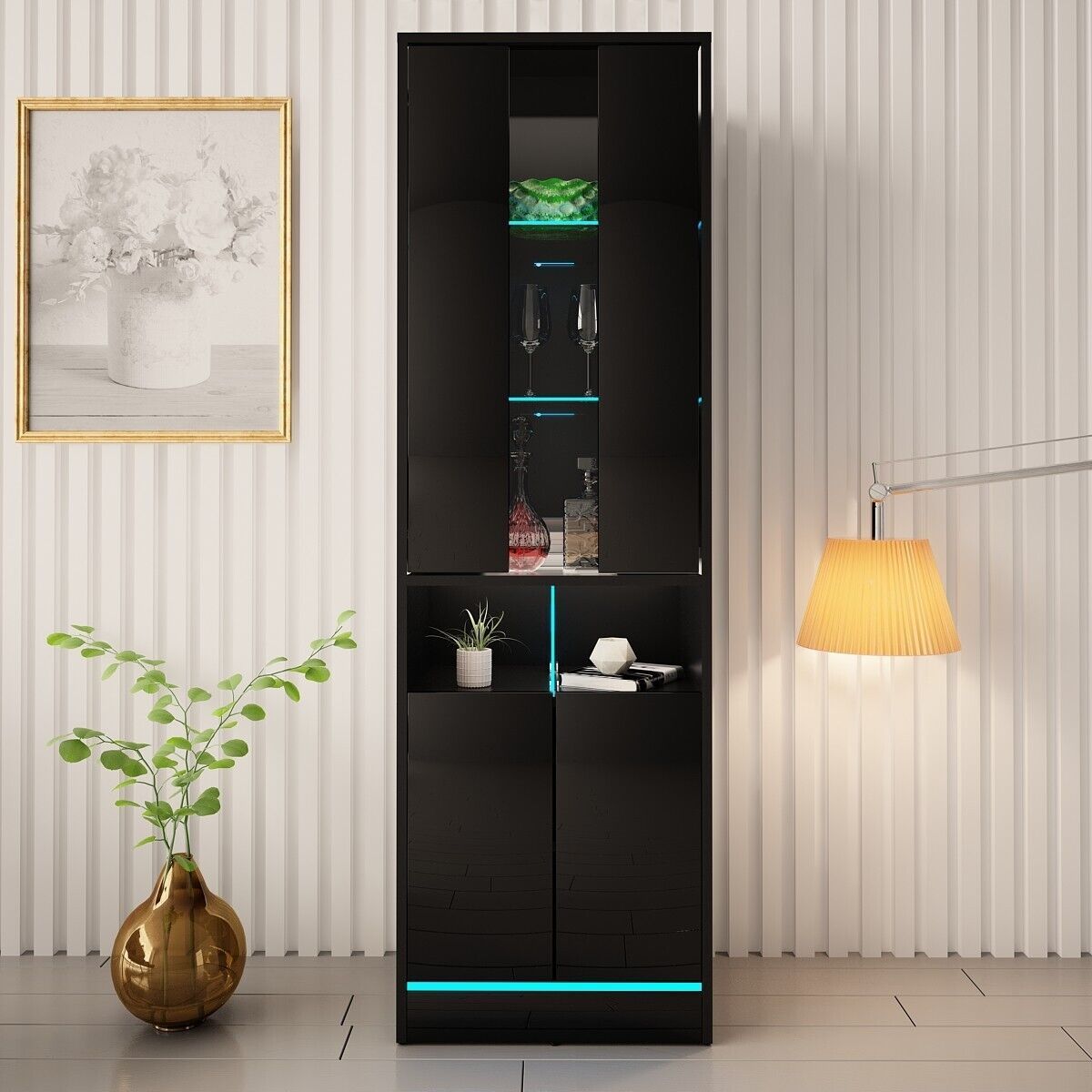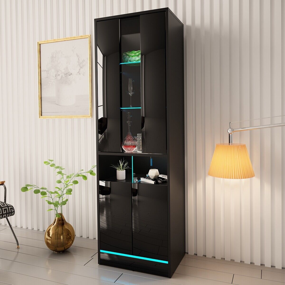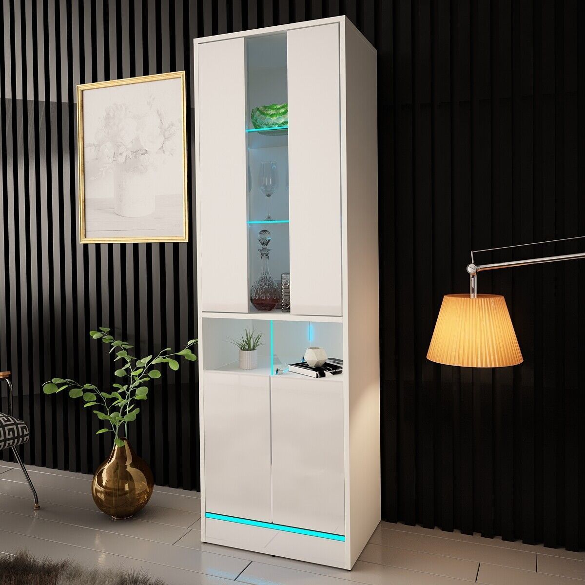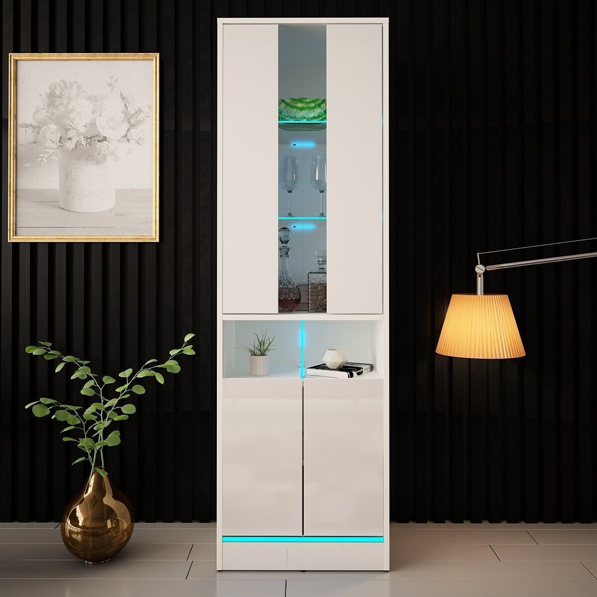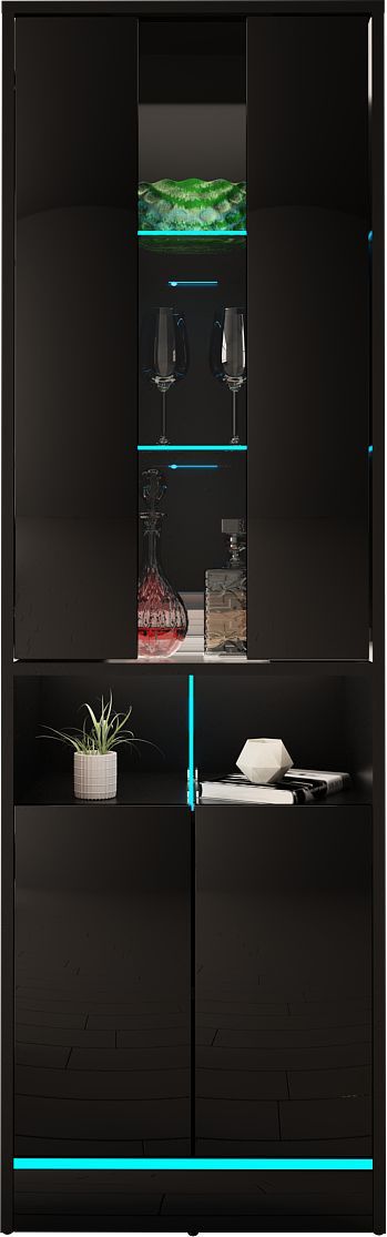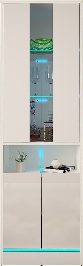 Vitrine Highboard Hochschrank Glasvitrine Regal mit LED56cm hochglanz mehrfarbig