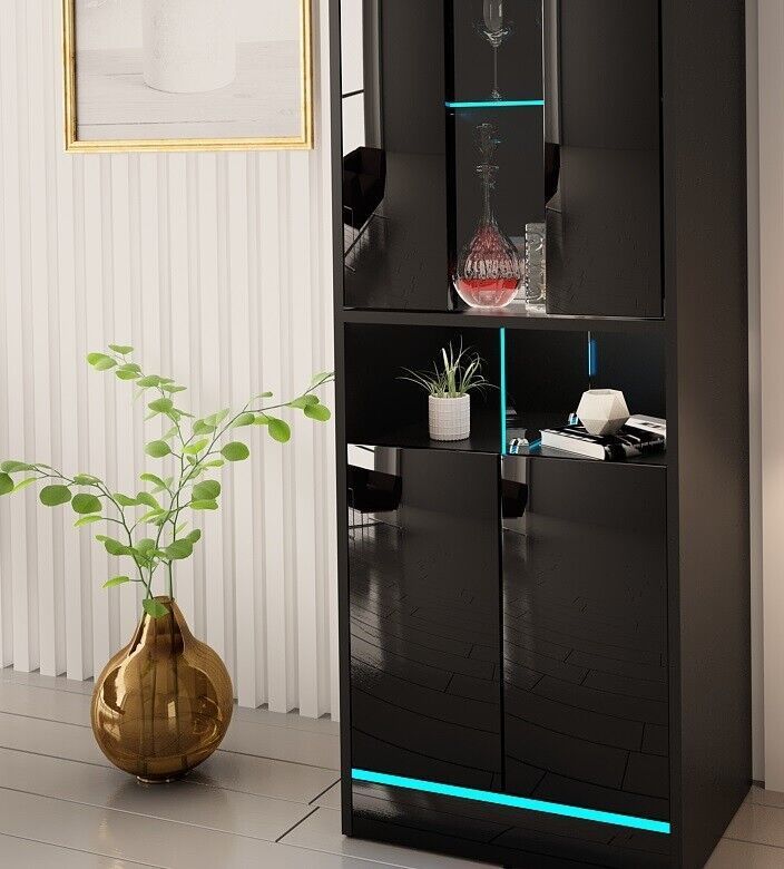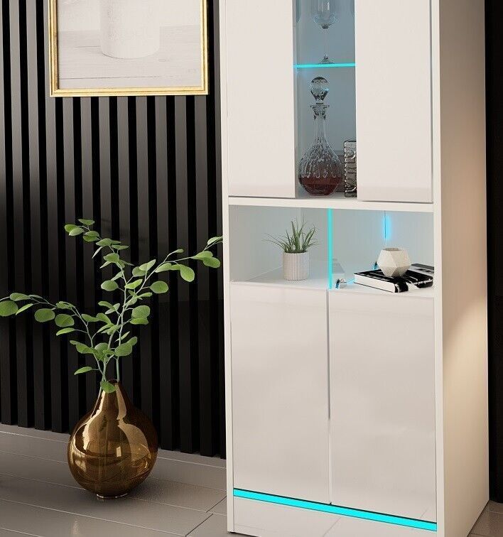 UNSERE ARTIKEL BEWERTUNGEN FRAGEN ZU DEN FAVORITEN STRORES EBAY Fotogallerie Produktbeschreibung Vitrine Highboard Hochschrank Glasvitrine Regal mit LED 56cm weiss hochglanz oder schwarz hochglanz DISPARO01 Beschreibung : DISPARO 01 ist die ideale Wahl für alle, die eine Kombination aus Schlichtheit