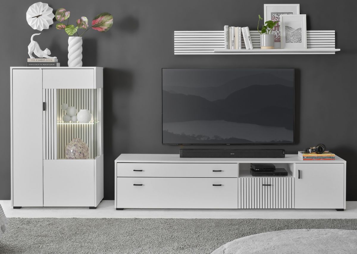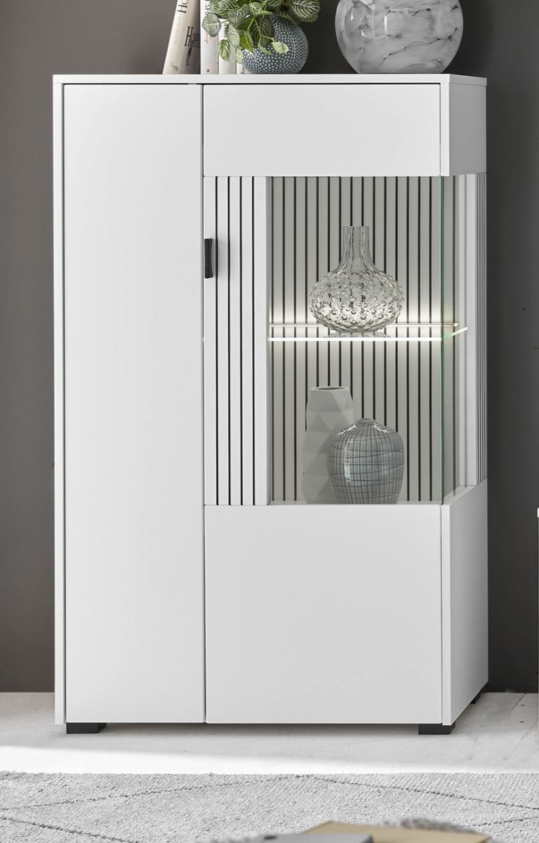 Vitrine Highboard in weiß matt Wohnzimmer Esszimmer Schrank mit Soft-Close Merced