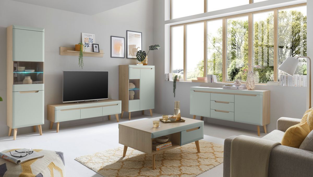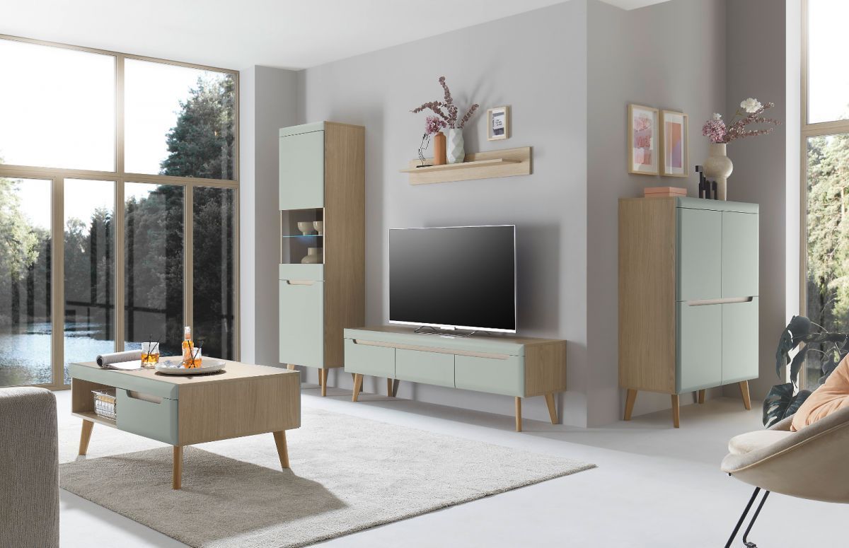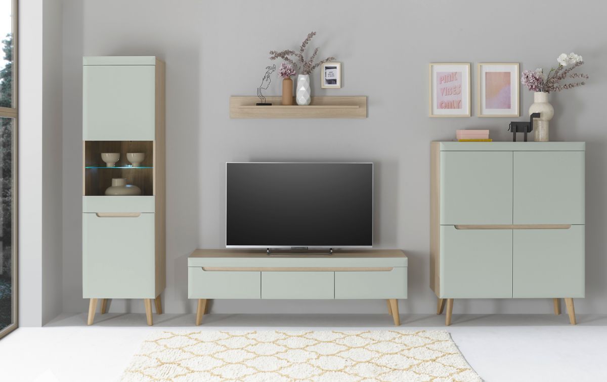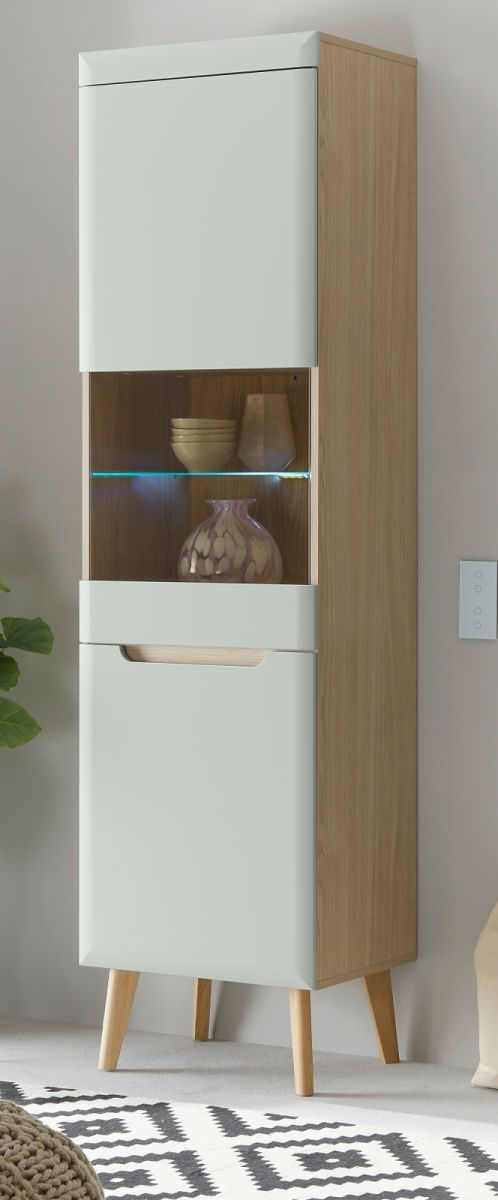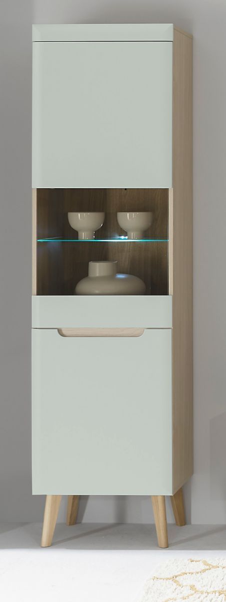 Vitrine in Pistazie Eiche Vitrinenschrank Wohnzimmer Esszimmer Schrank Isgard