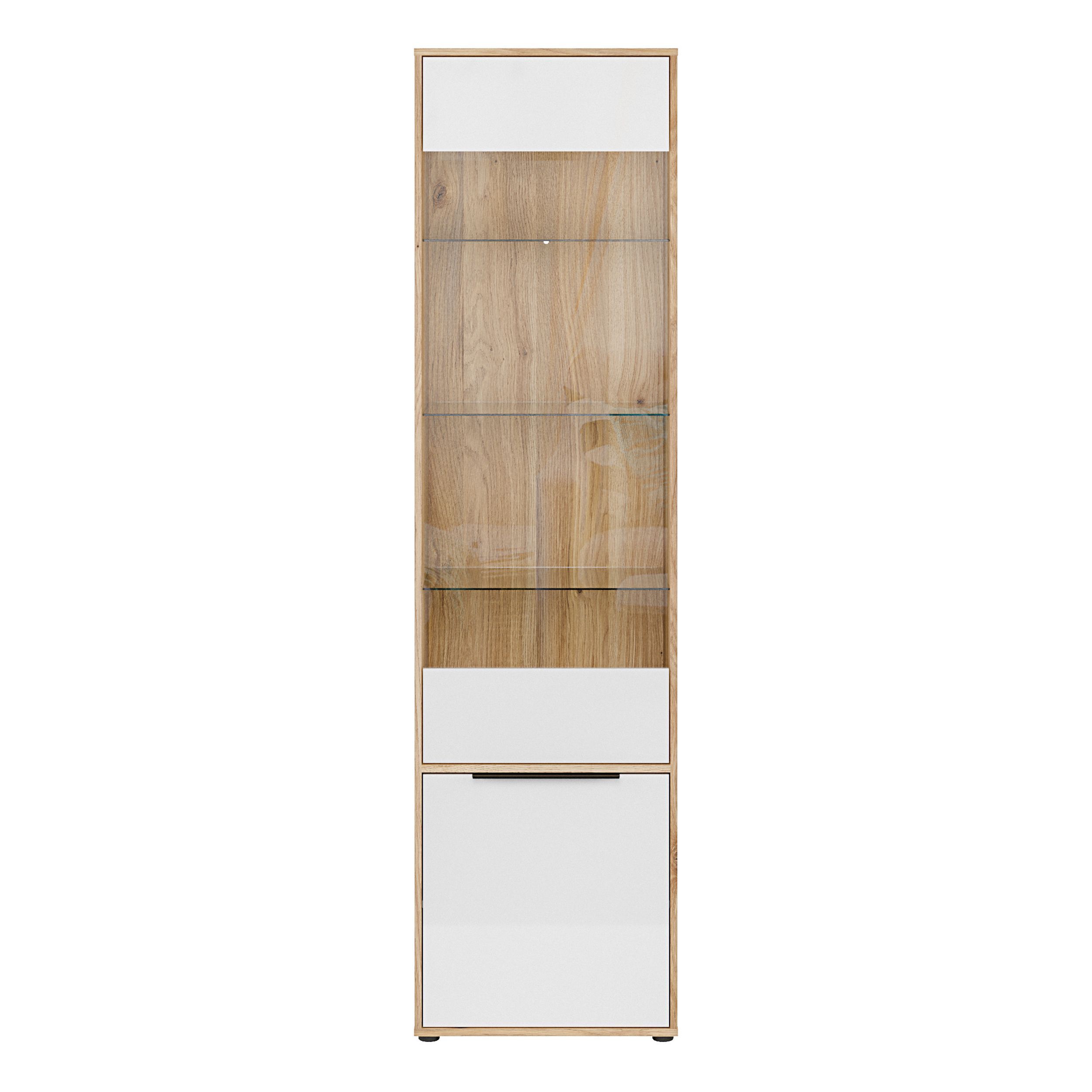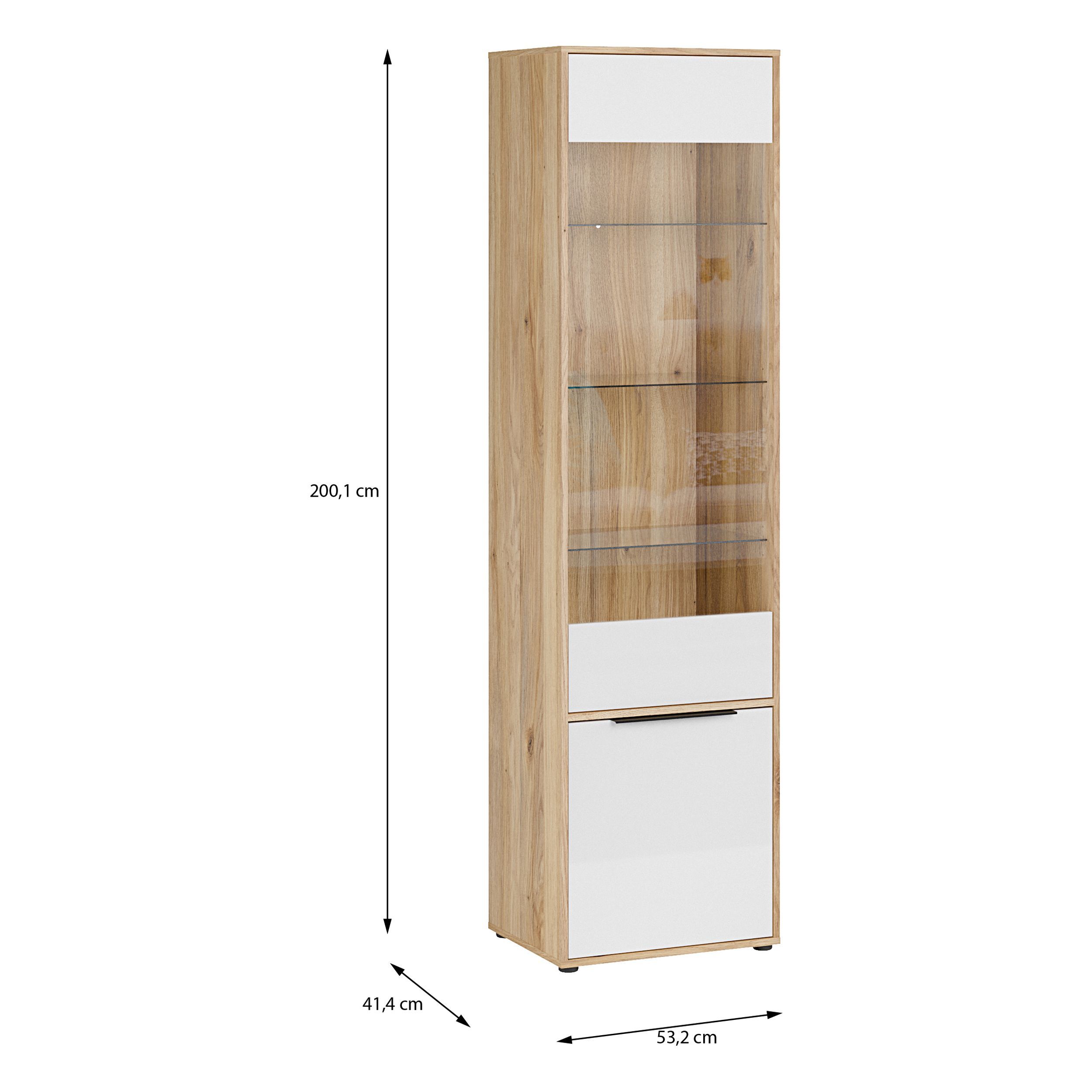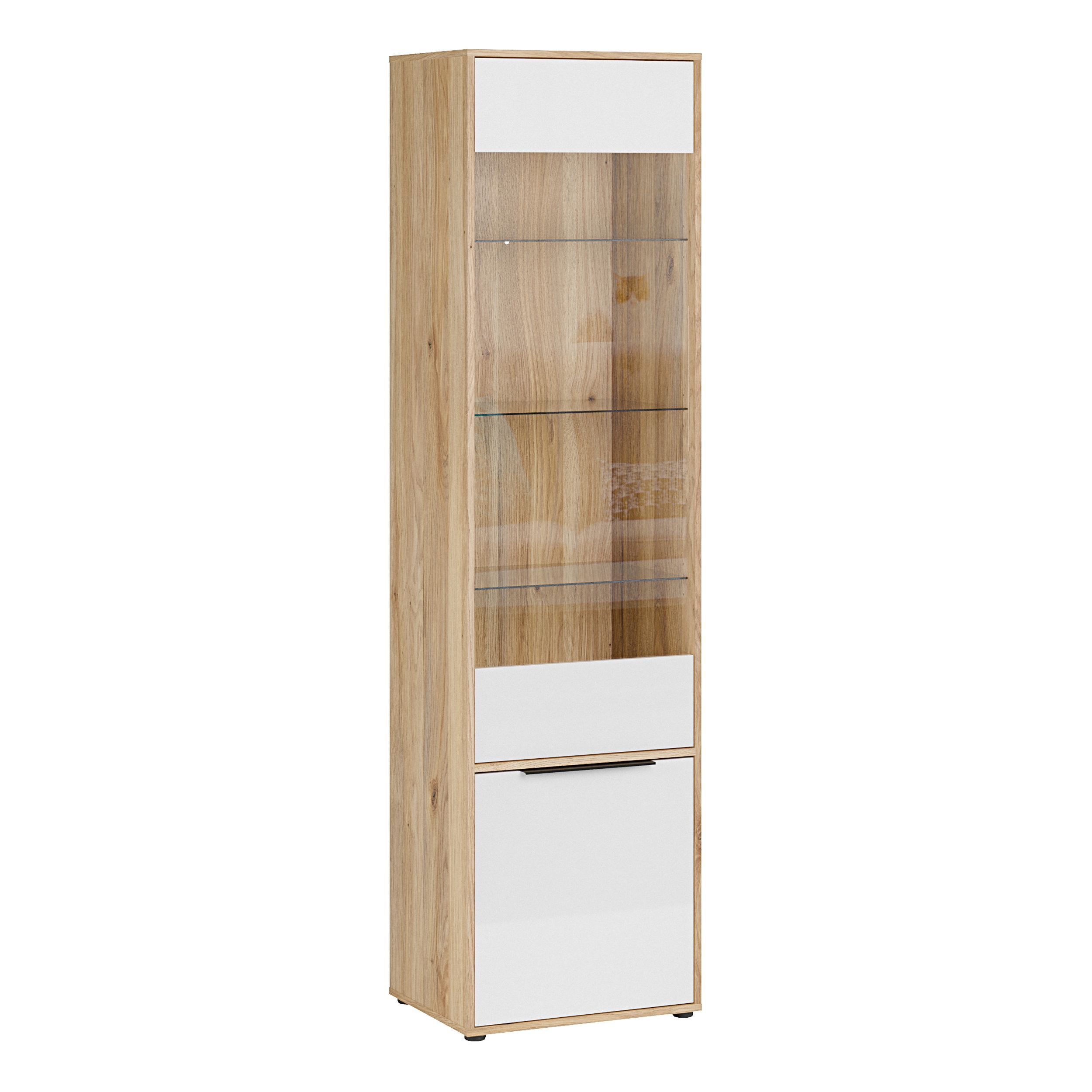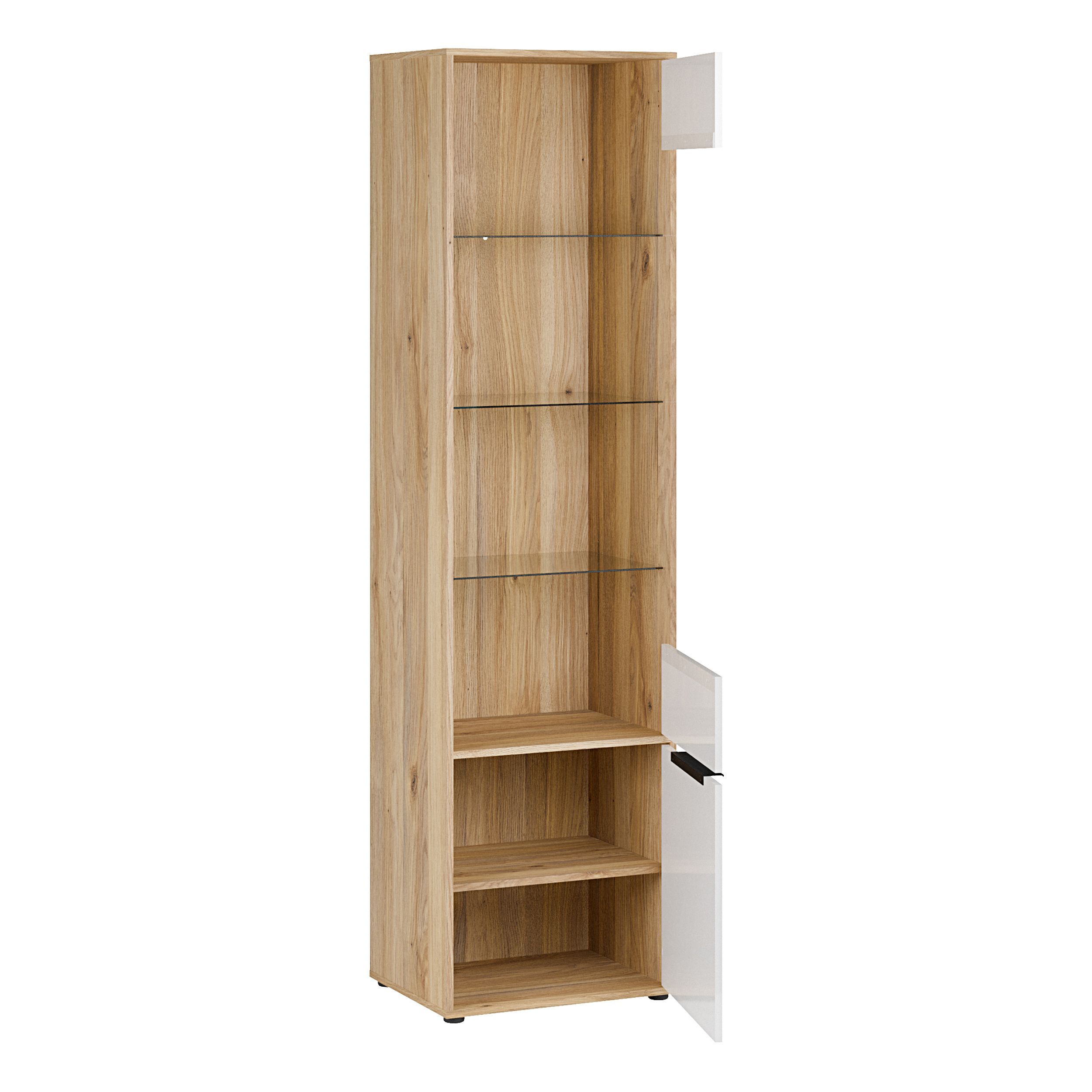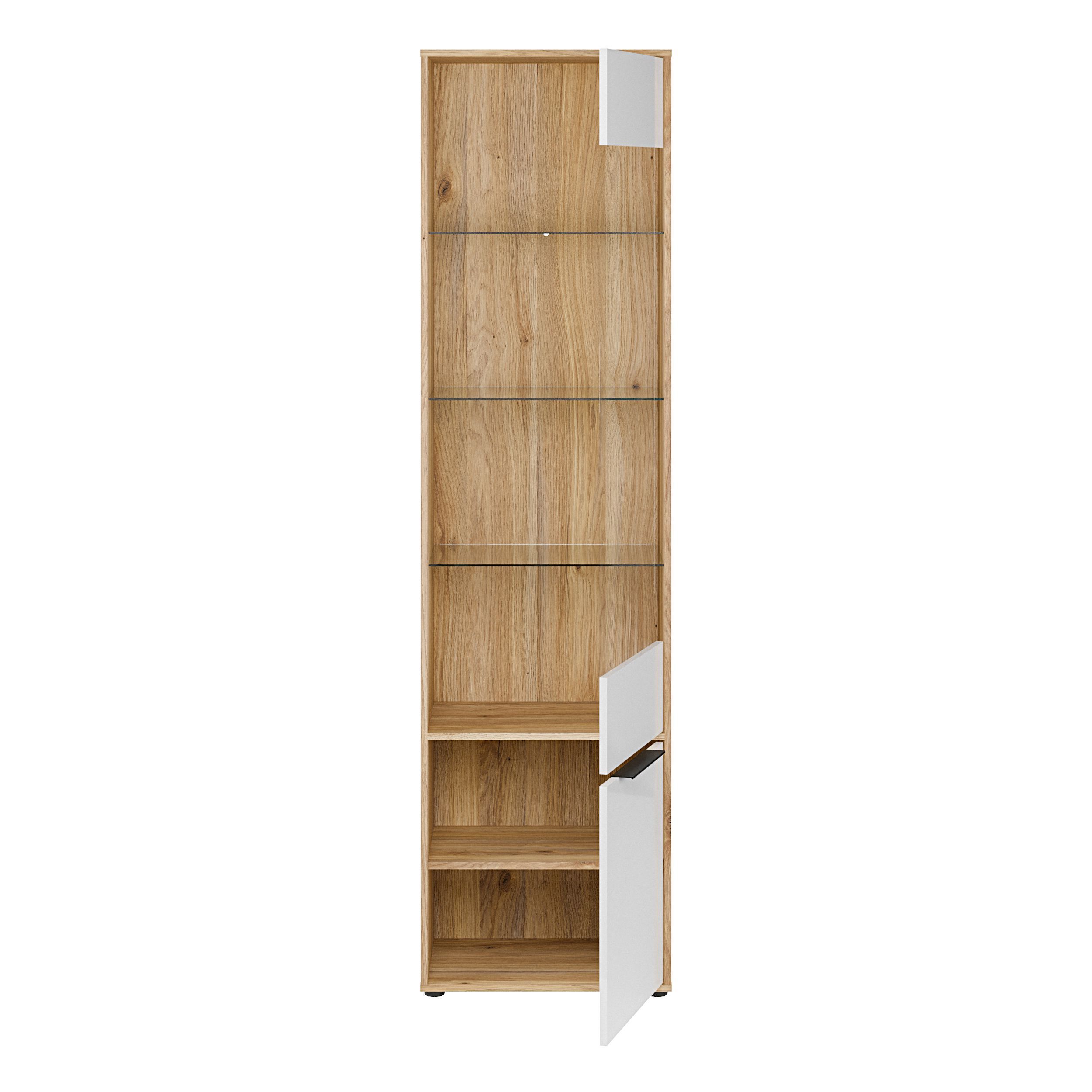 Vitrine L/R ORKNEY OKYV711-Q344 Vitrinenschrank - Eiche Mauvella/Weiß Glanz