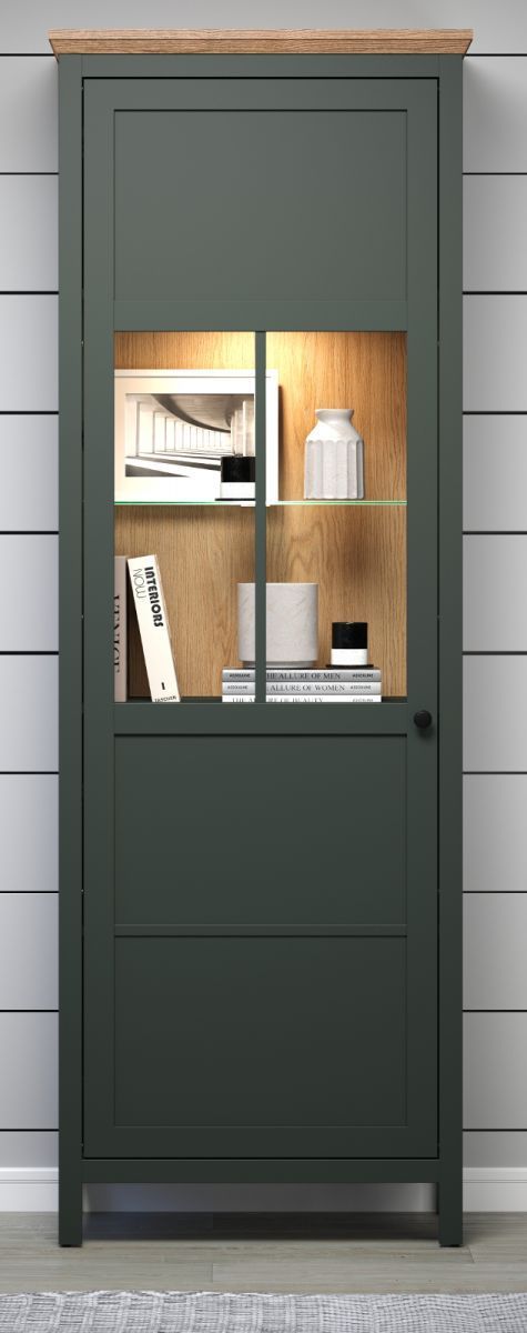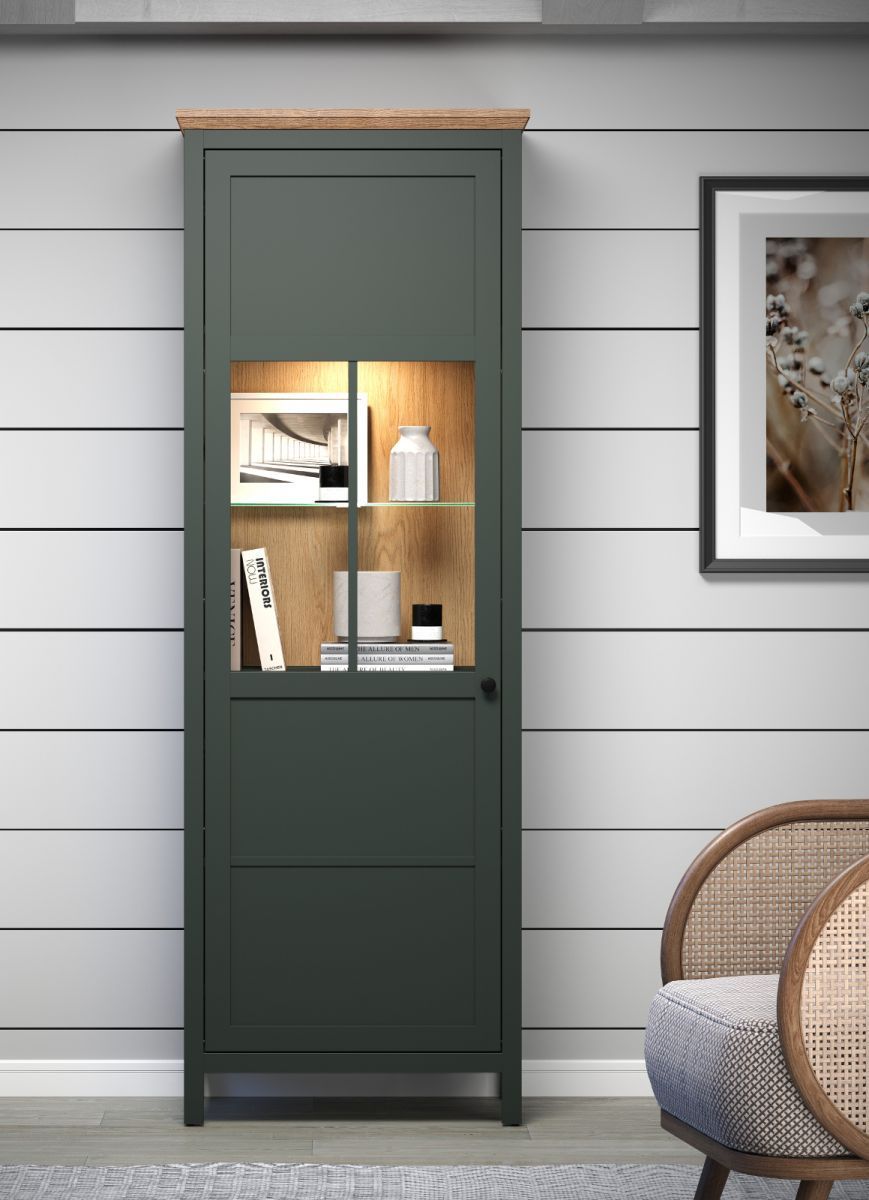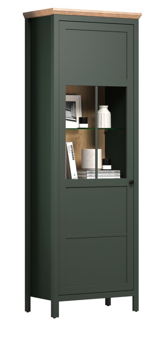 trendteam Vitrine Landhaus in grün Vitrinenschrank Esszimmer und Wohnzimmer inkl. LED Stanton