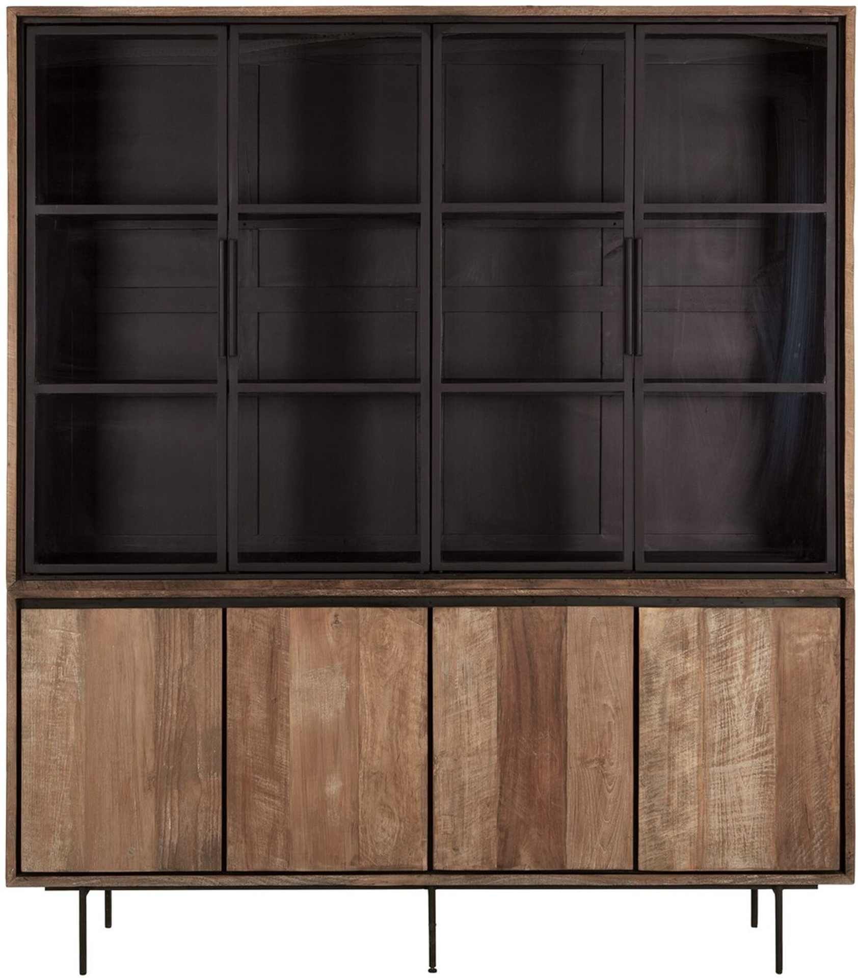 Vitrine Metropole aus Teak und Metall, Industrial Design, natur und schwarz, 4