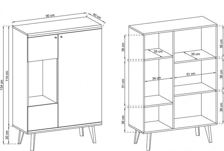 Vitrine Primo PWT90 Vitrinenschrank Schrank Wohnzimmer 2 Türiger
