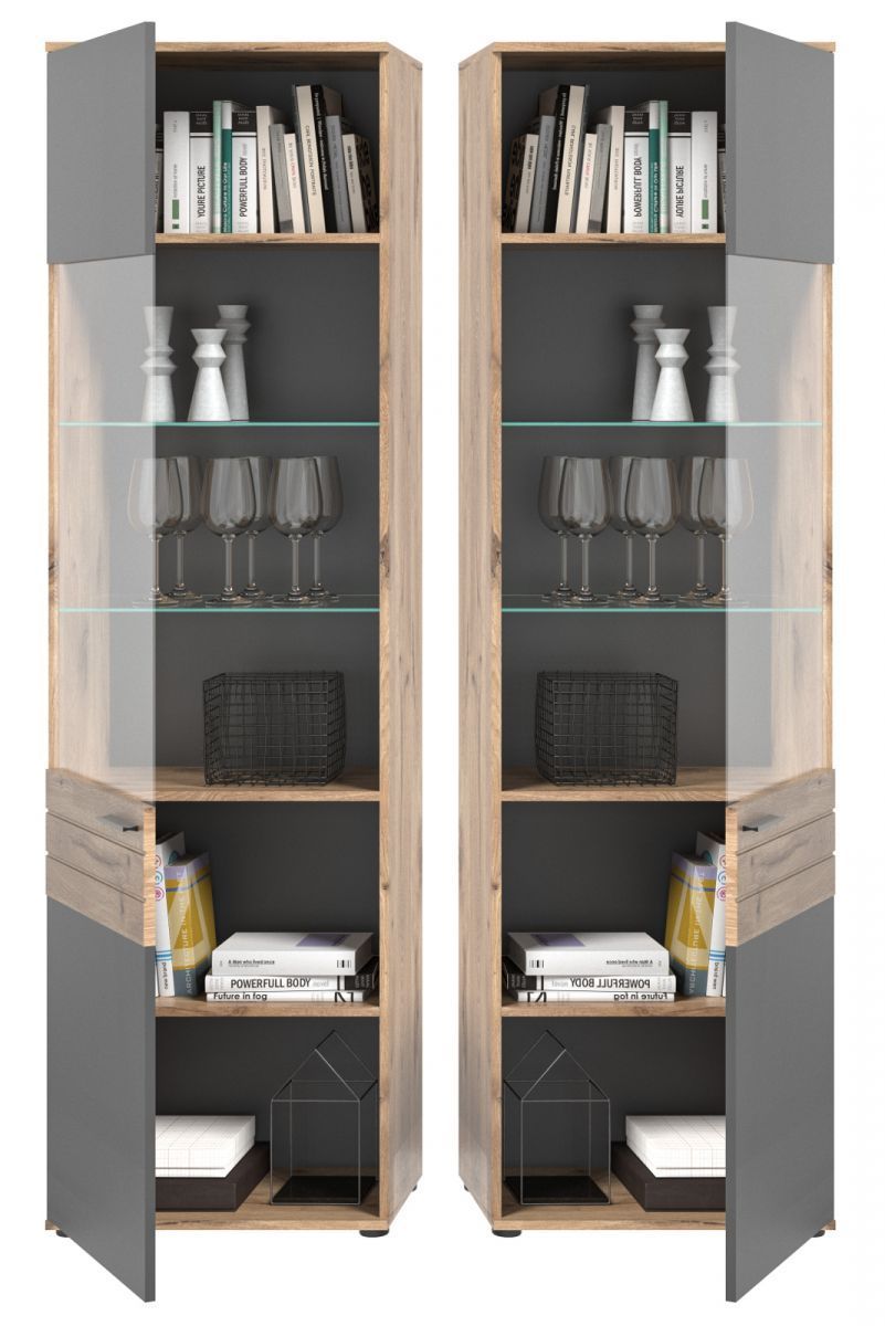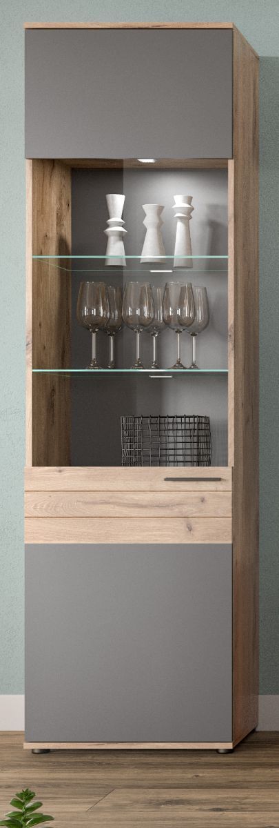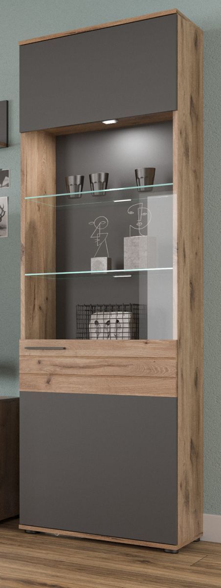 Vitrine "Tomaso" in Nox Eiche und Basalt grau Wohn- und Esszimmer Vitrinenschrank 57
