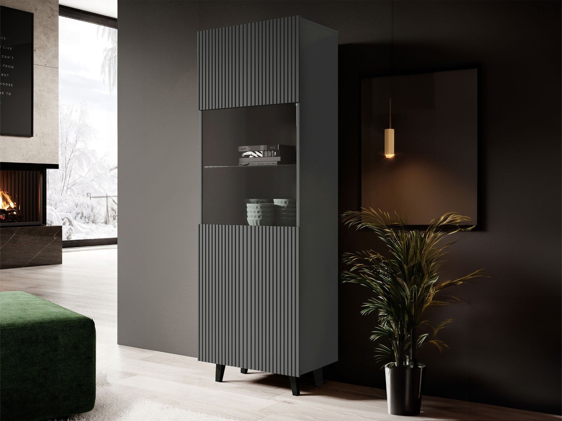 Vitrine Vamos Grey Stilvoll Standvitrine Modern Standregal Wohnzimmer Kollektion M24