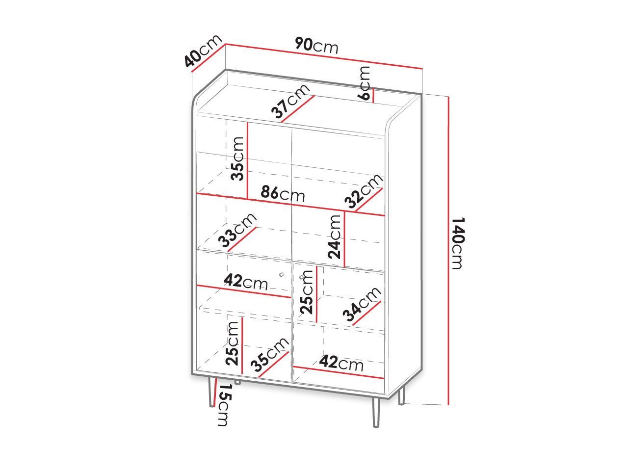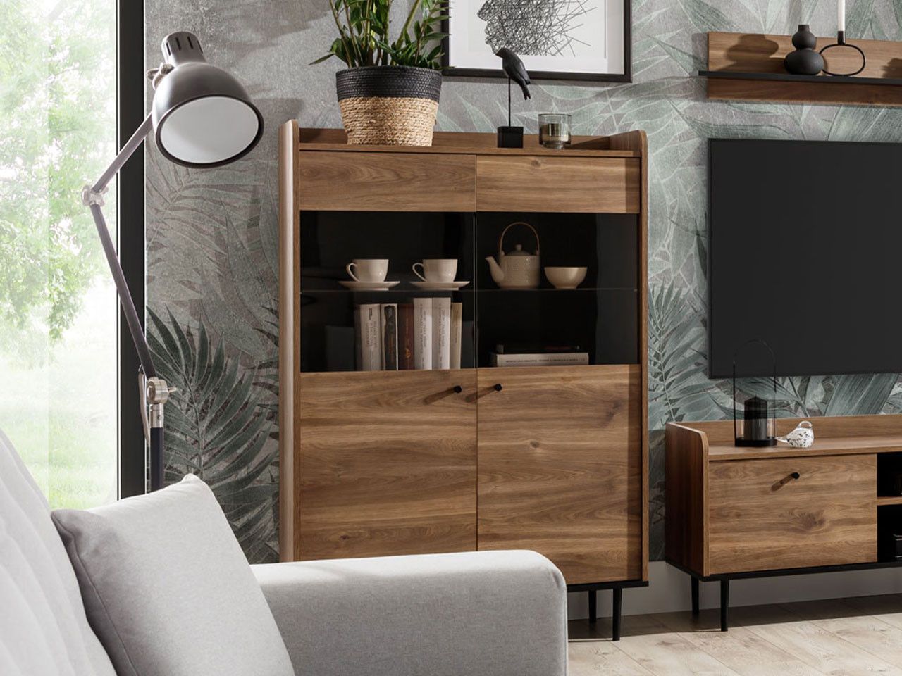 Vitrine Vasina VS-10 90 Wohnzimmer Kollektion Schrank Standregal Vitrinenschrank