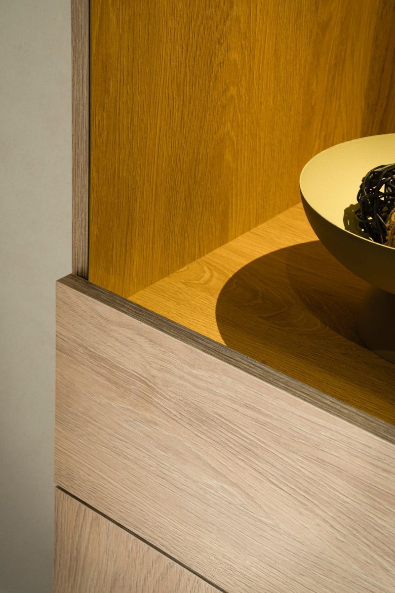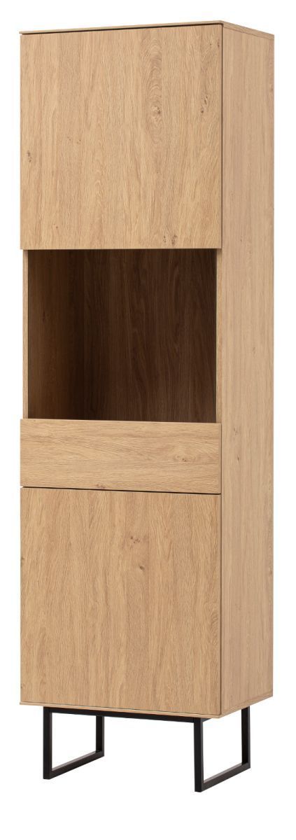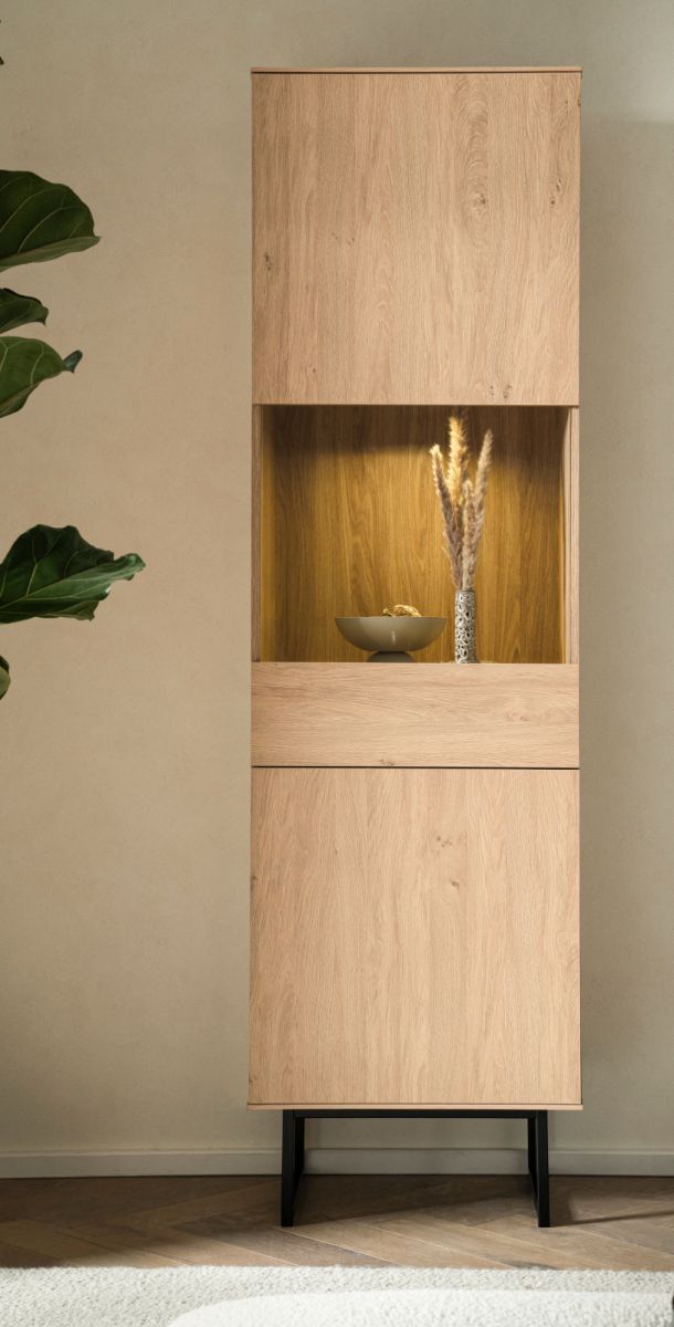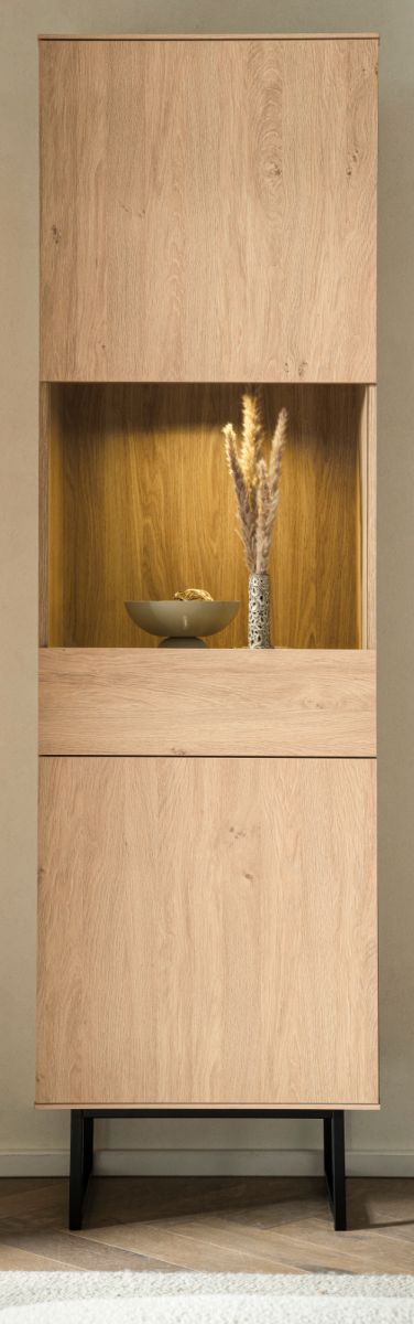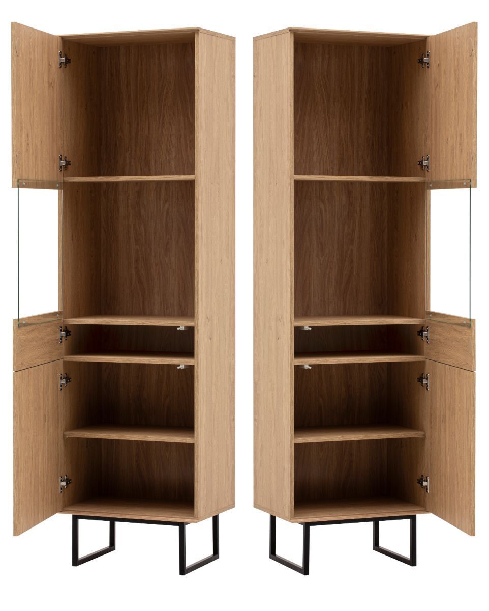 Vitrine Vitrinenschrank Eiche 58x200 cm Wohnzimmer Esszimmer Schrank Push-Open Breda