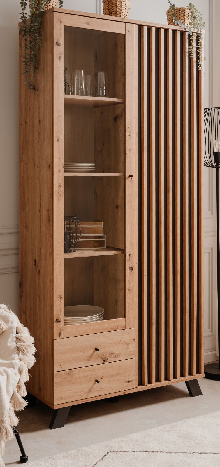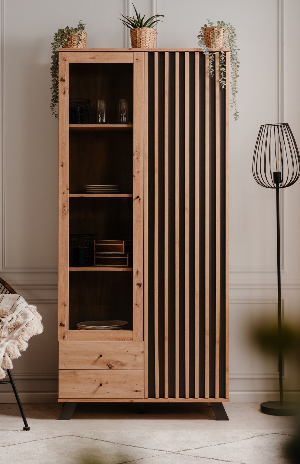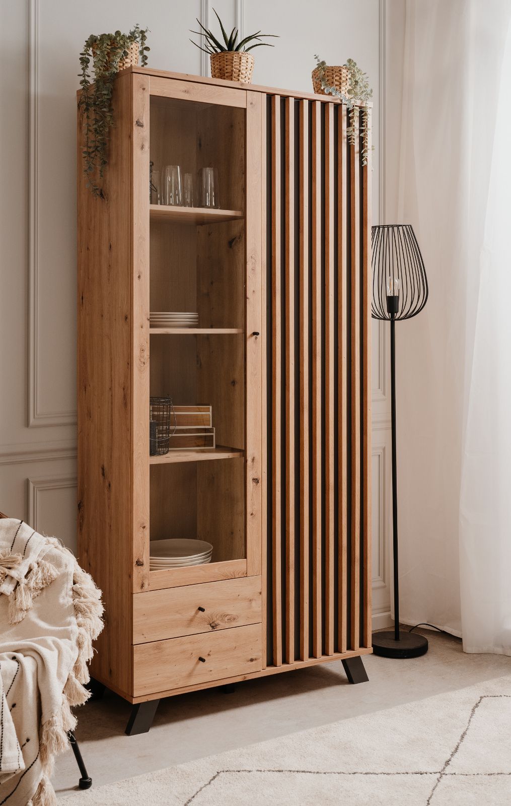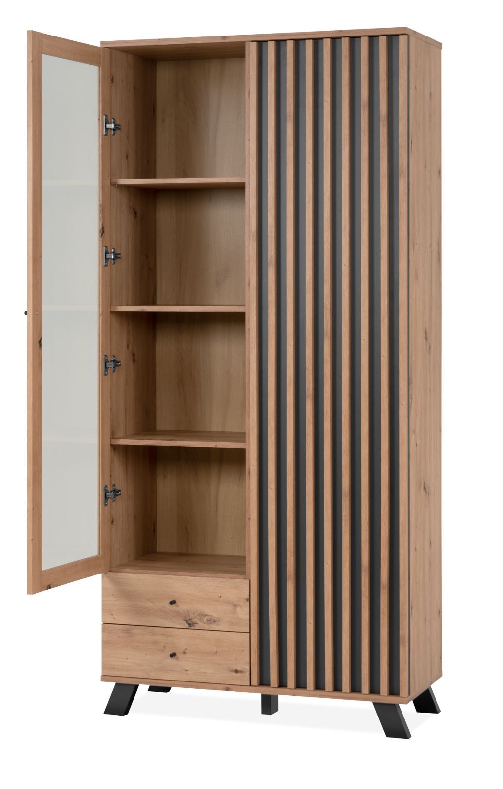 Vitrine Vitrinenschrank Eiche Artisan Industrial Look Wohn Esszimmer Schrank Madem