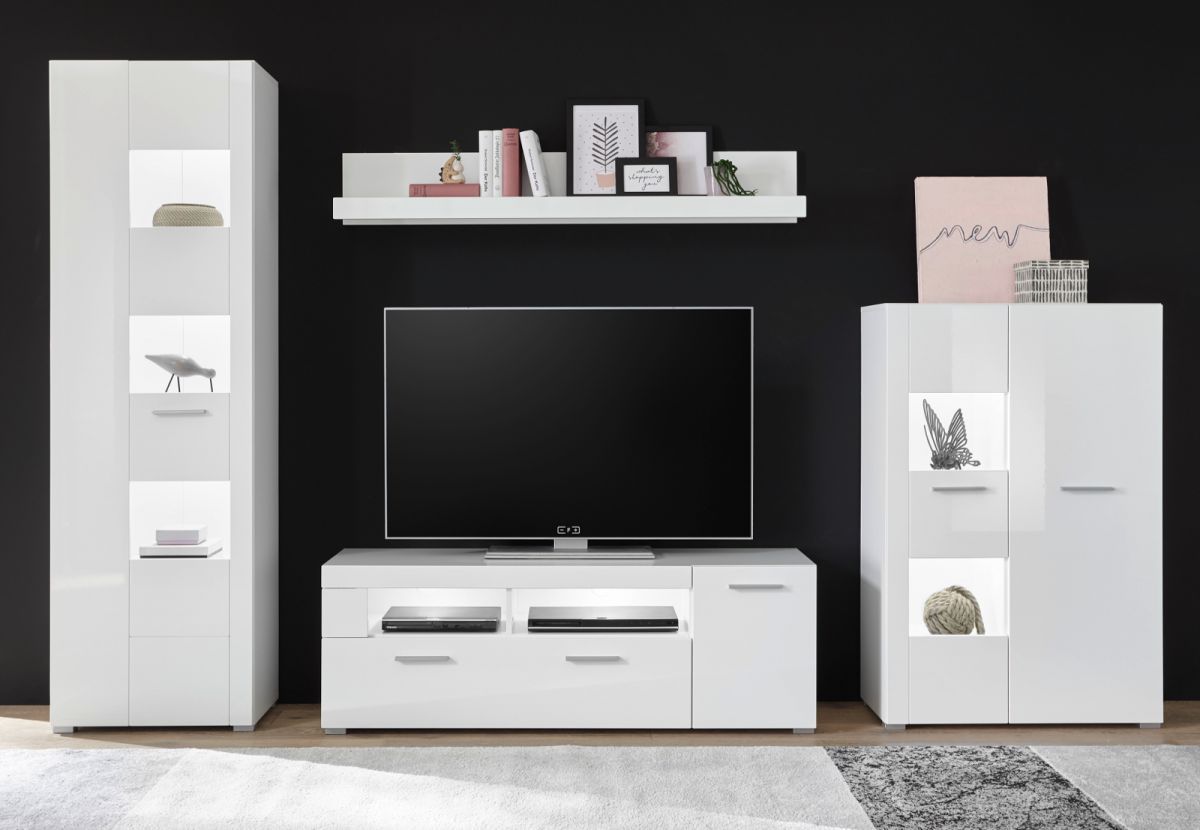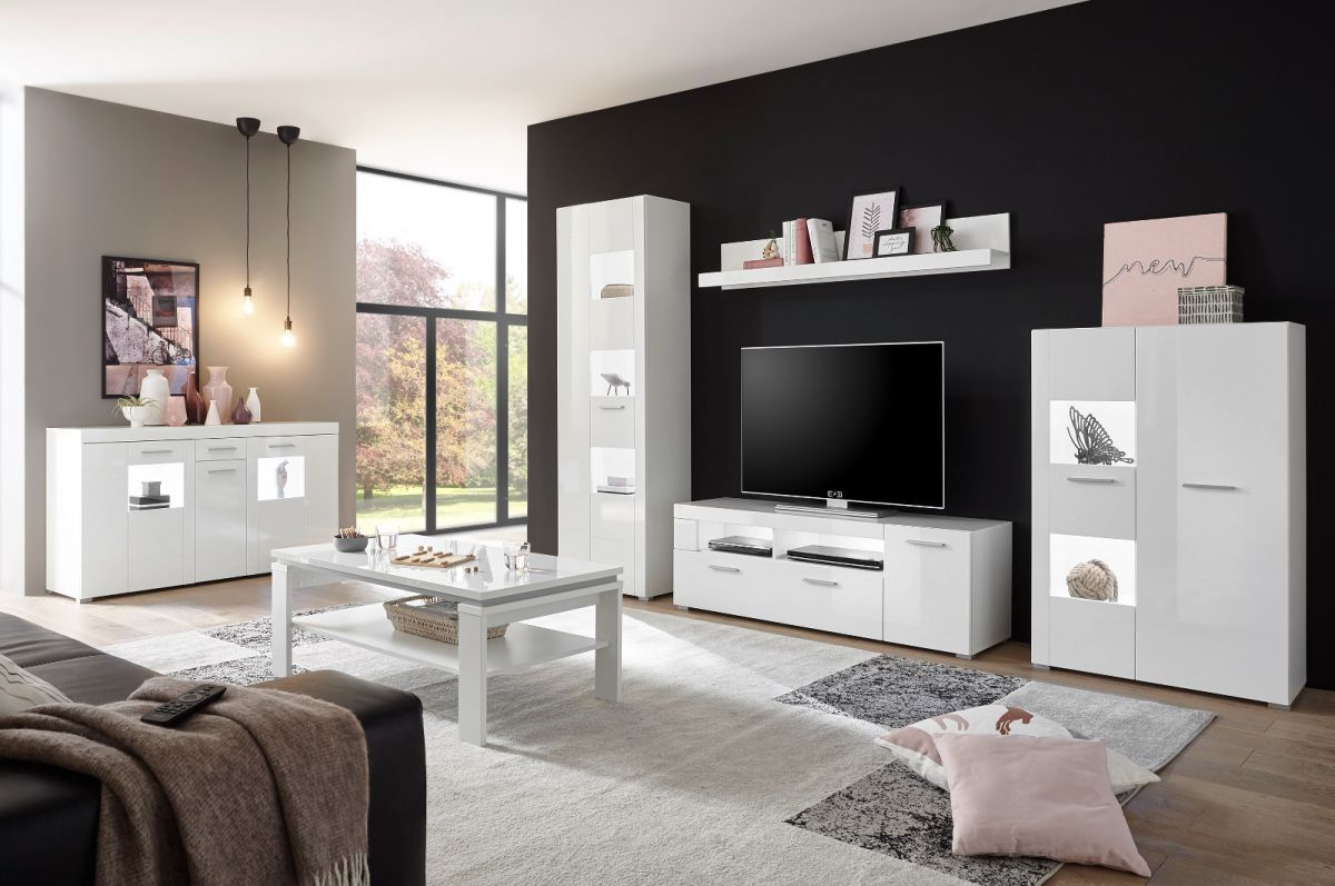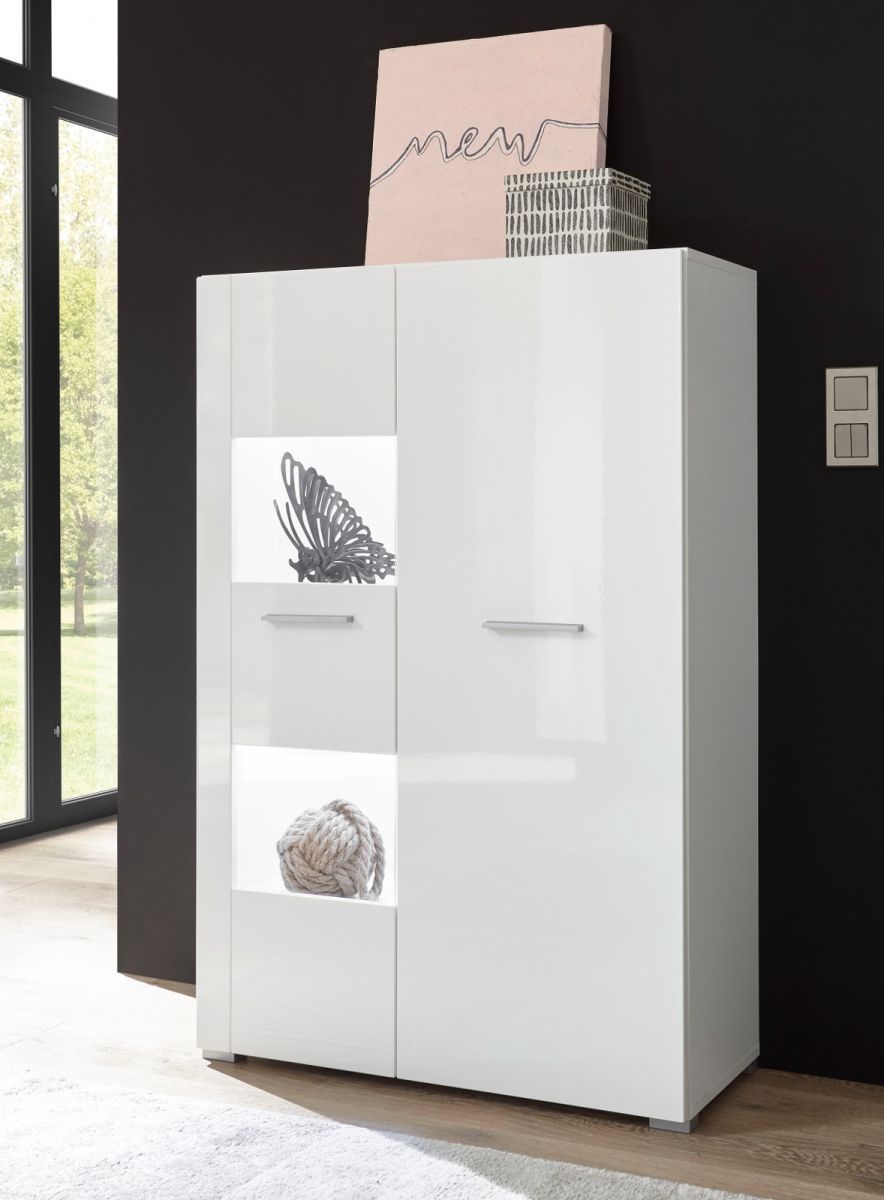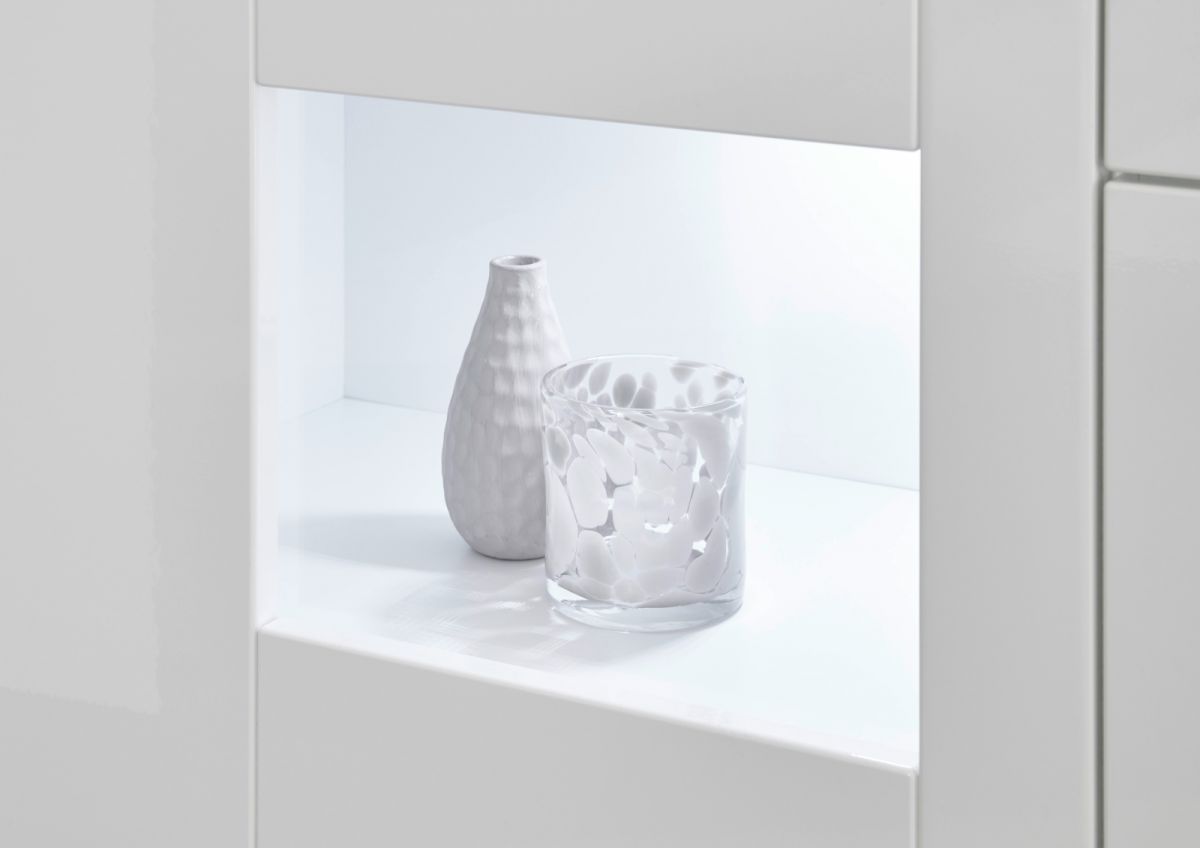 Vitrine Vitrinenschrank Möbel Wohnzimmer Esszimmer weiß Hochglanz Crucero 80x123 cm