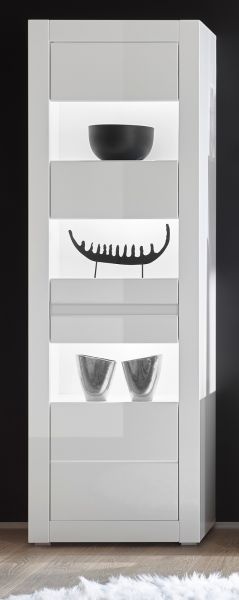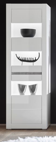 Vitrine Vitrinenschrank weiß Hochglanz / Stone grau Wohn Esszimmer Schrank Nobile
