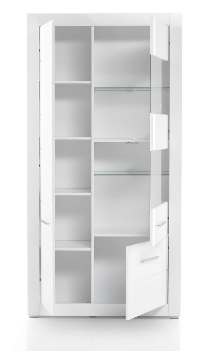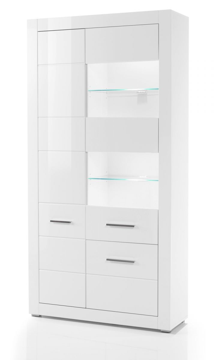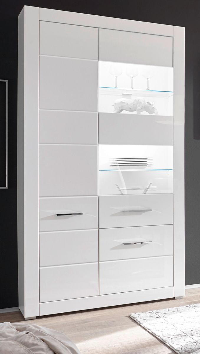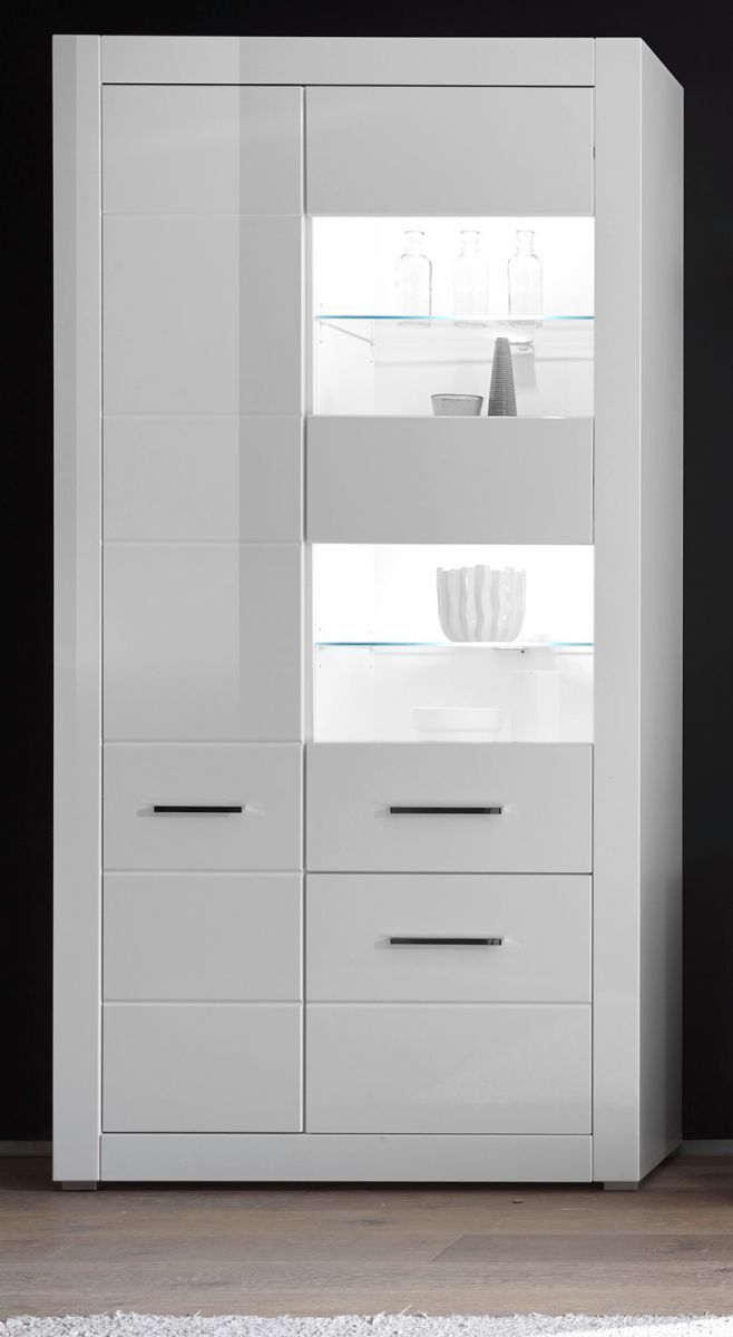 Vitrine Vitrinenschrank weiß Hochglanz Wohn Esszimmer Schrank 100x198 cm Carrara
