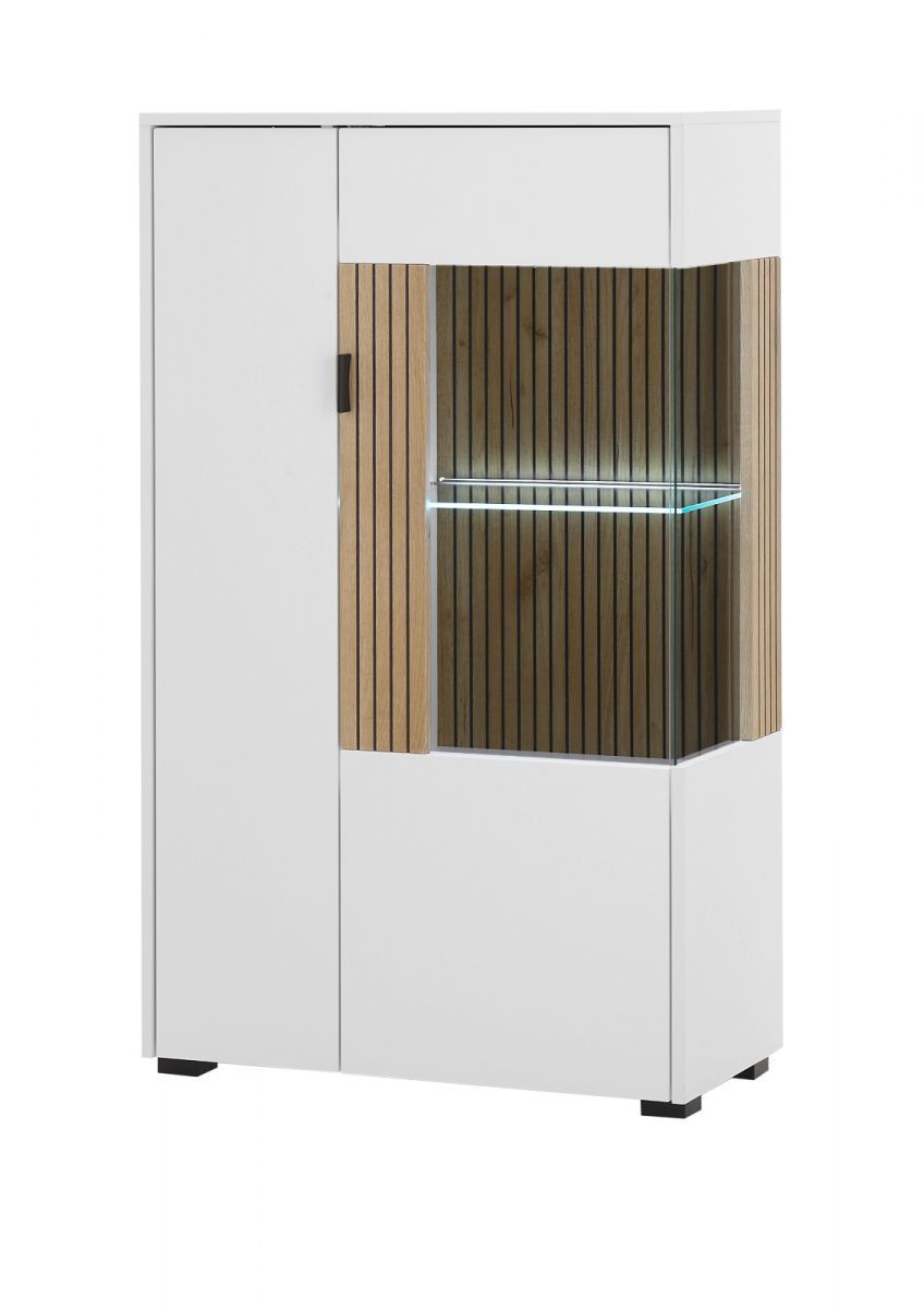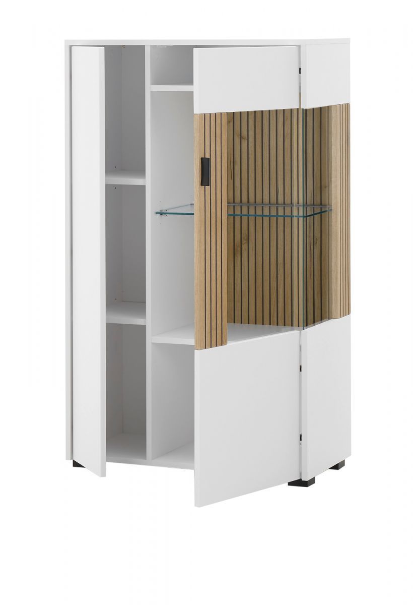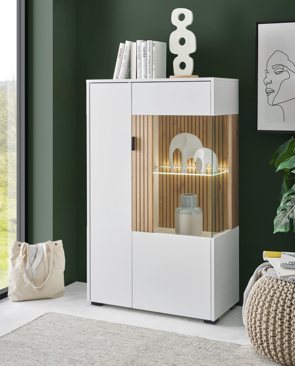 Vitrine weiß matt Eiche Wohnzimmer Esszimmer Schrank mit Soft-Close Highboard Merced