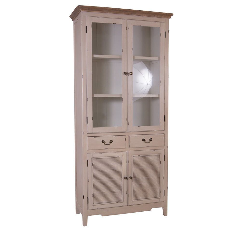 Vitrinenschrank Linde Holz Glas Landhaus Stil Vintage Look Vitrine creme Buffet
