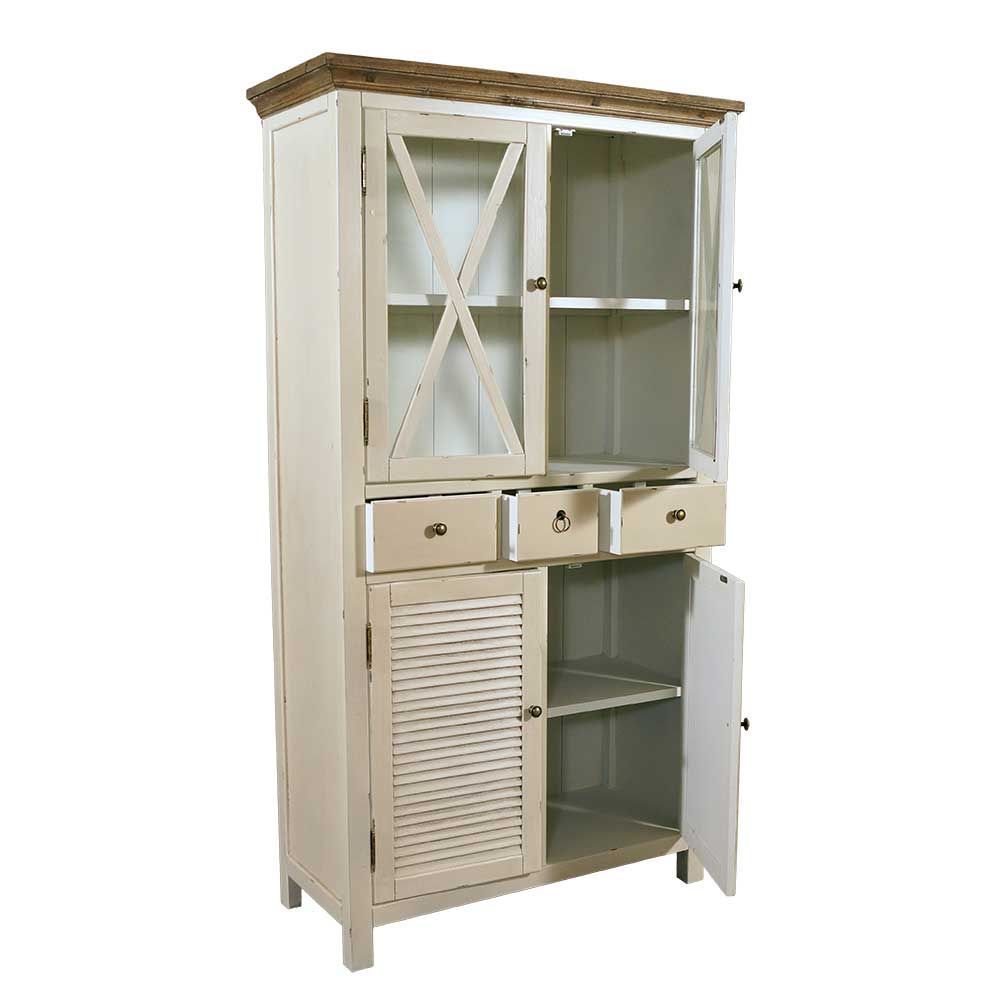 Vitrinenschrank Loire Glas Holz Landhaus Stil Vintage Look Vitrine creme NEU