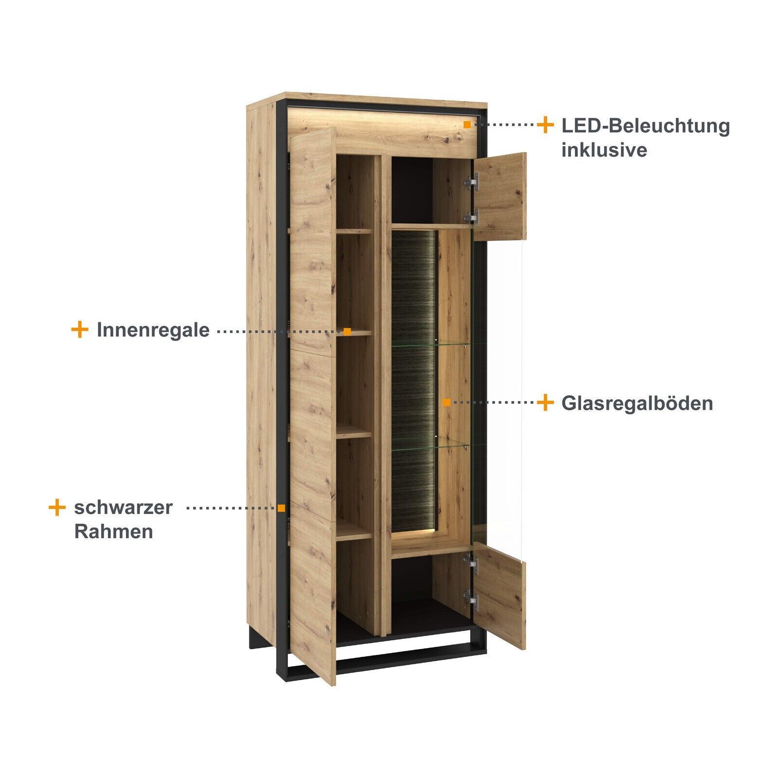 Vitrinenschrank QUANT QA-03 mit 3 Türen Vitrine LED Standvitrine Schrank Loft