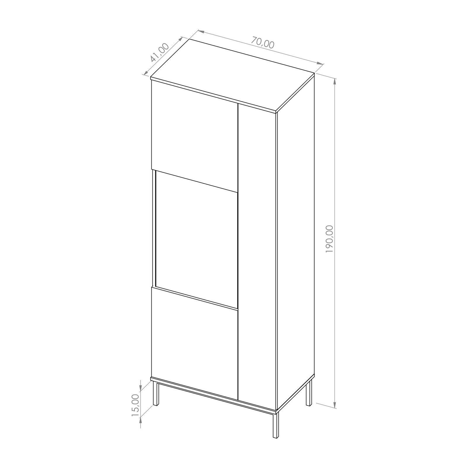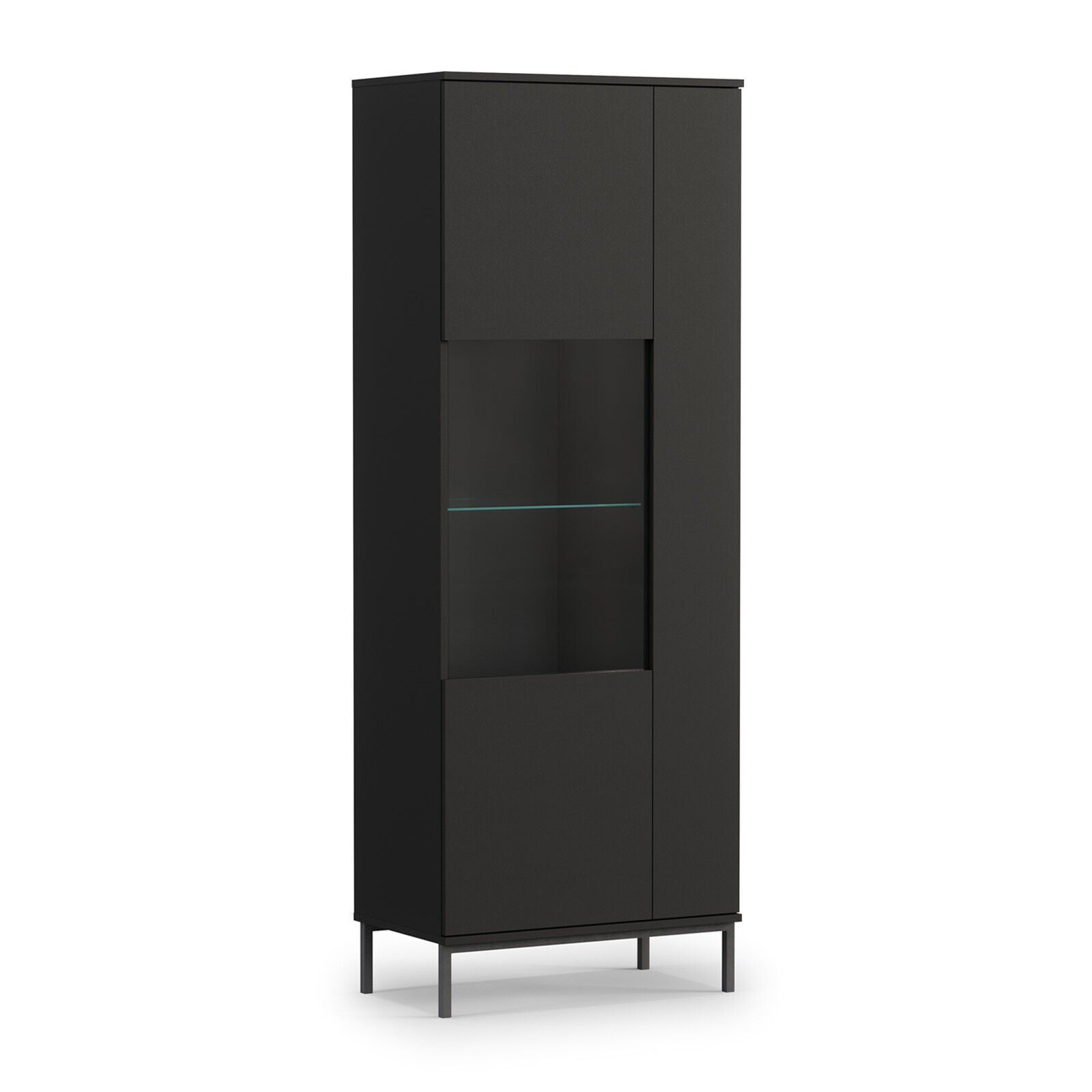 Vitrinenschrank QUERTY QT-07 Vitrine Standvitrine Kommode Regal Produktmerkmale: 2 Türen 9 geschlossene Regalfächer 1 Regalboden aus Glas grifflose Fronten Tür mit Glasfront Untergestell aus Metall schwarze Beine aus Metall mit Gleitern Push-to-Open-Öffnungssystem Korpus aus laminierter Spanplatte 1