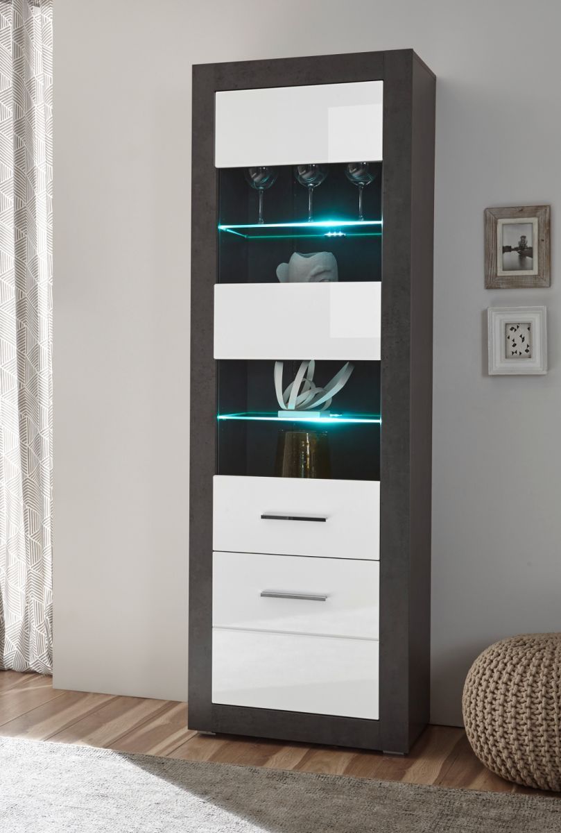 Vitrinenschrank Standvitrine weiß Hochglanz Stone grau Wohnzimmer Hochschrank Briard