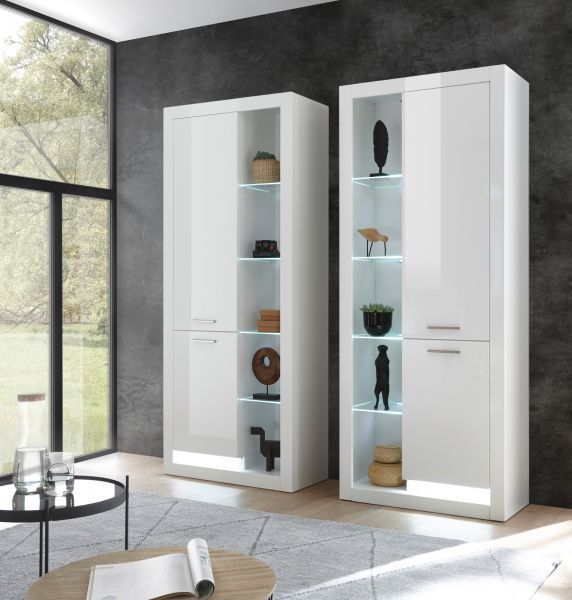 Vitrinenschrank Standvitrine weiß Hochglanz Wohnzimmer Esszimmer Schrank Ladis