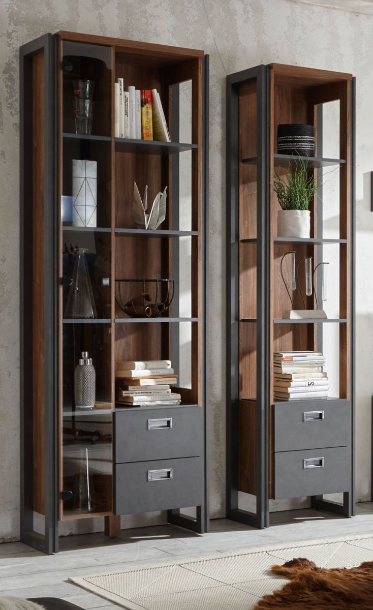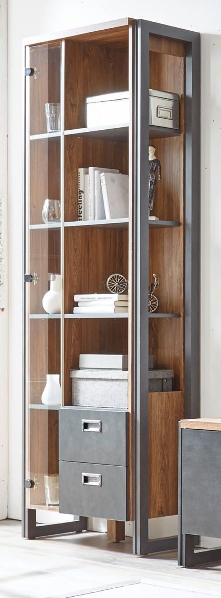 Vitrinenschrank Vitrine Eiche grau Wohnzimmer Esszimmer Regal Schrank Auburn